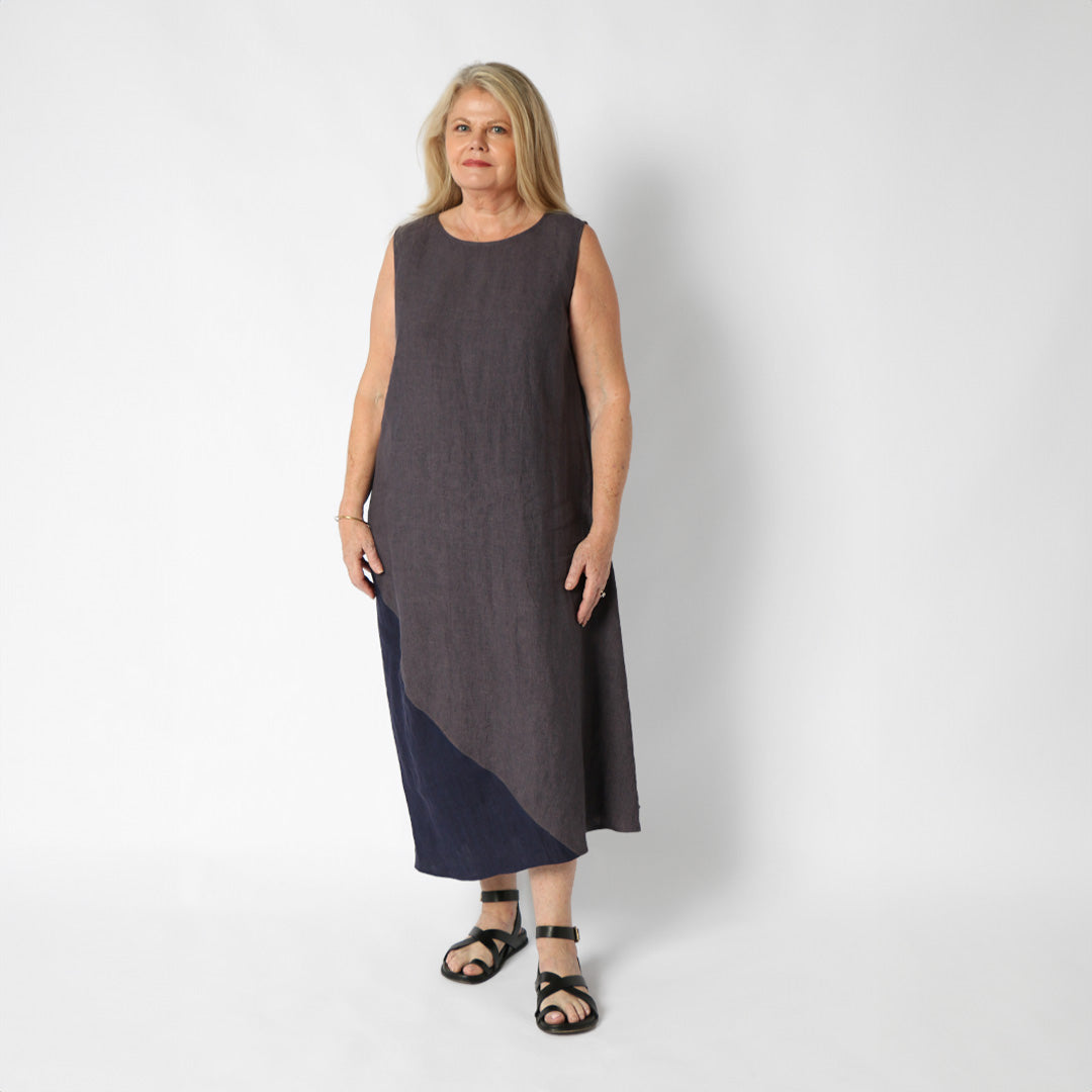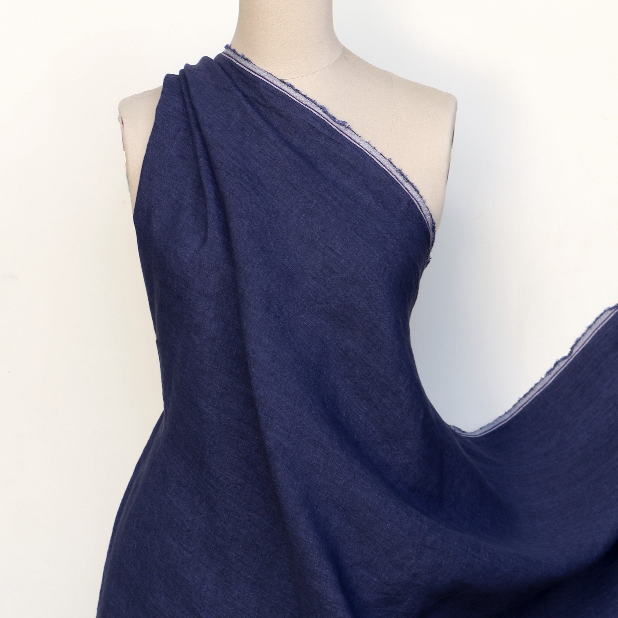 Dark blue yarn-dyed washed 100% linen