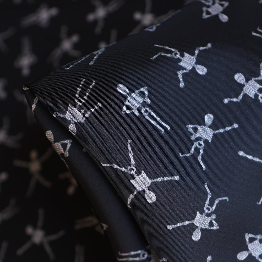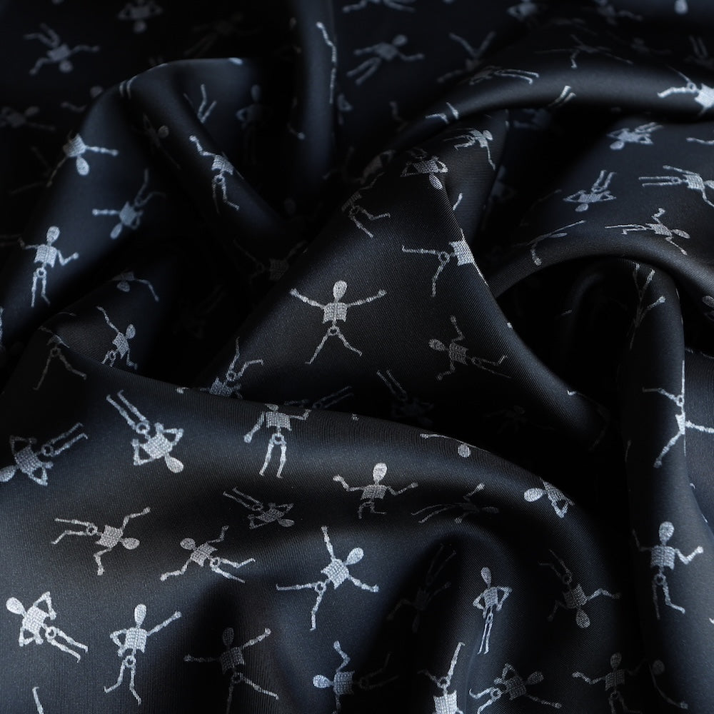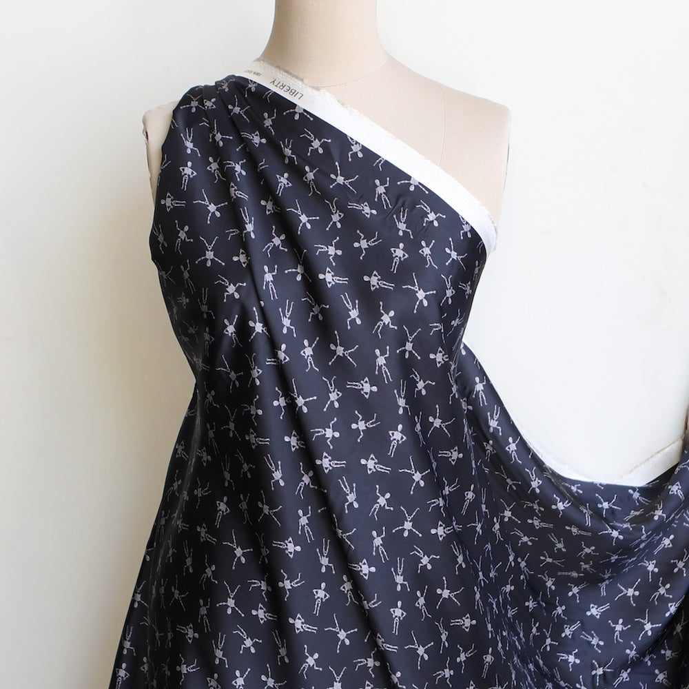 Liberty Fabrics skeletons on black printed 100% viscose lining