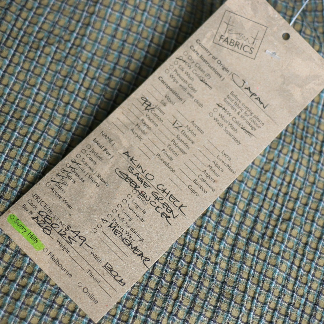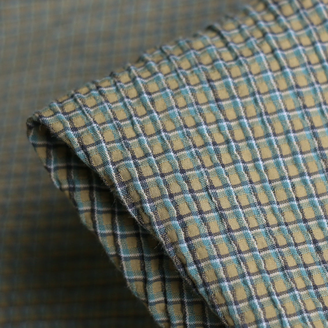 Akino Check Sage Seersucker