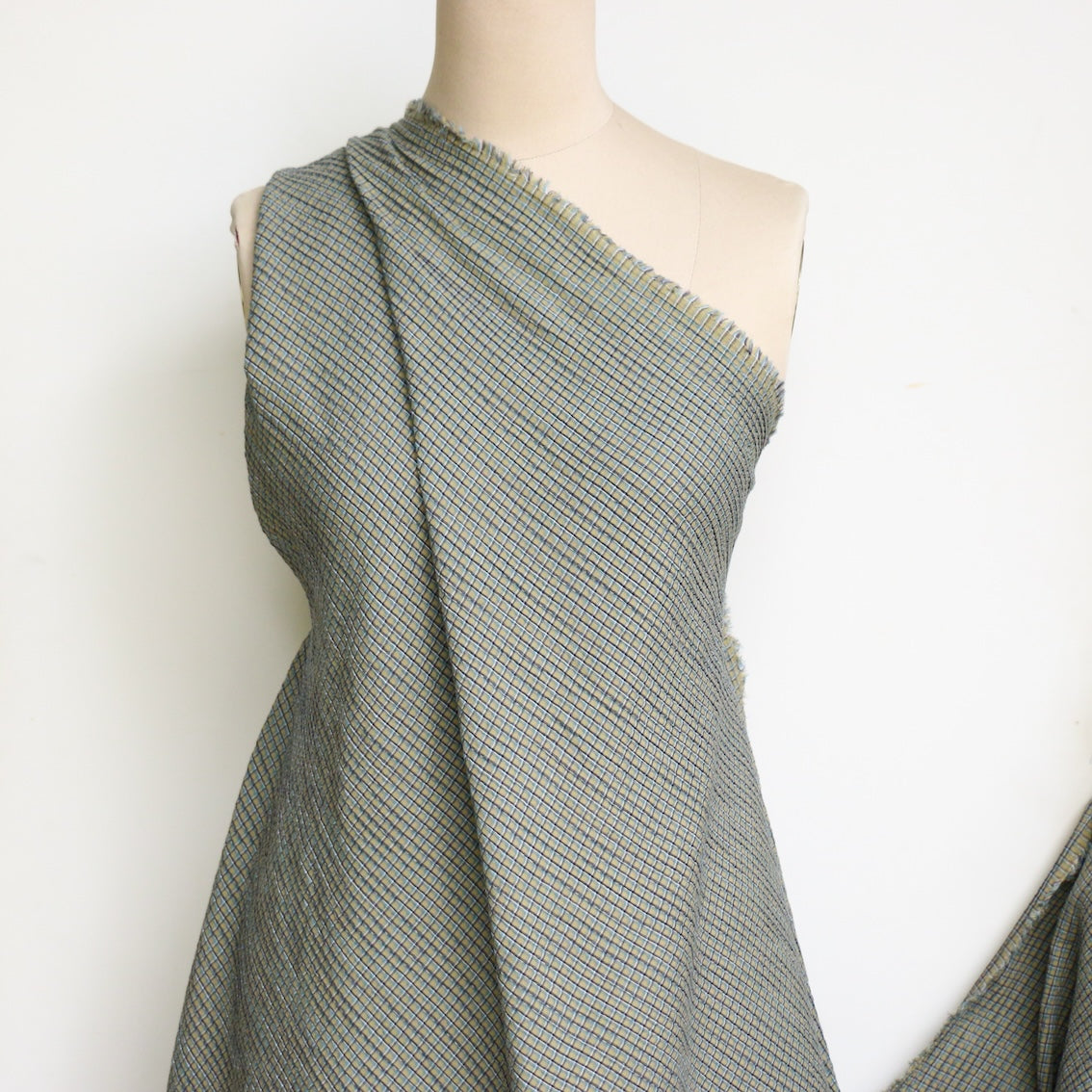 Japanese sage green 99% cotton 1% elastane checked seersucker