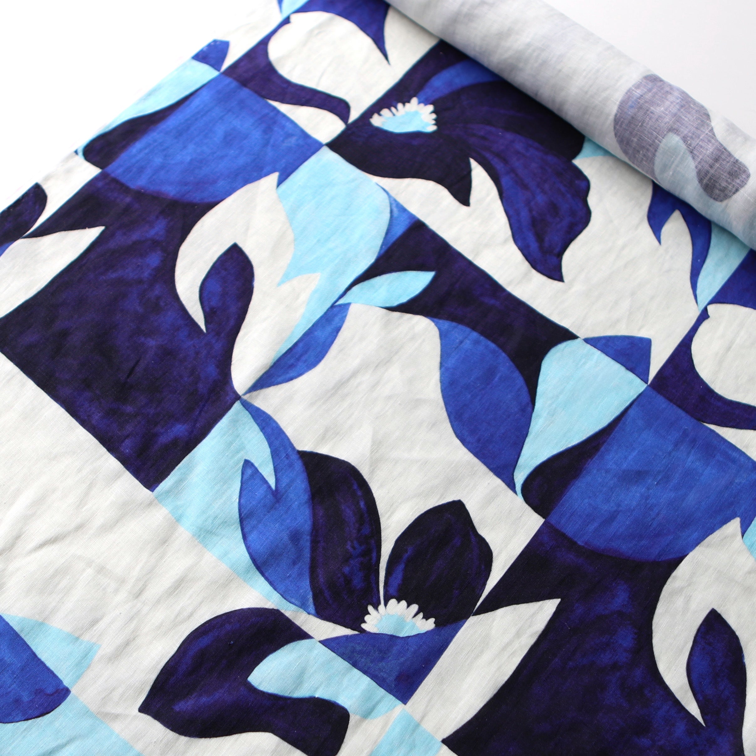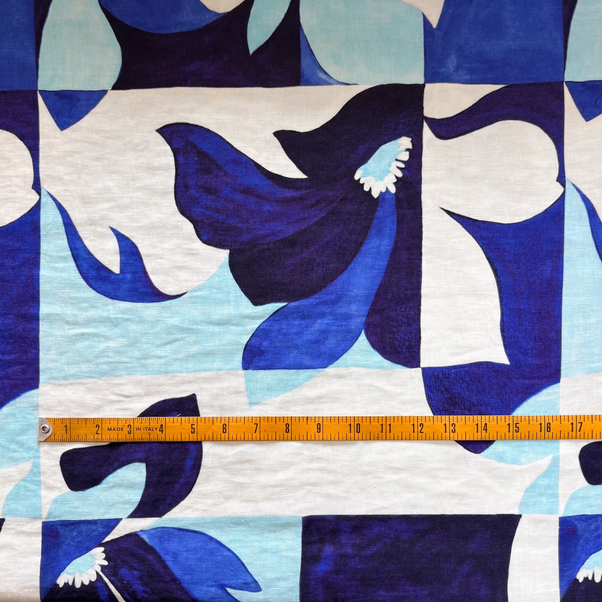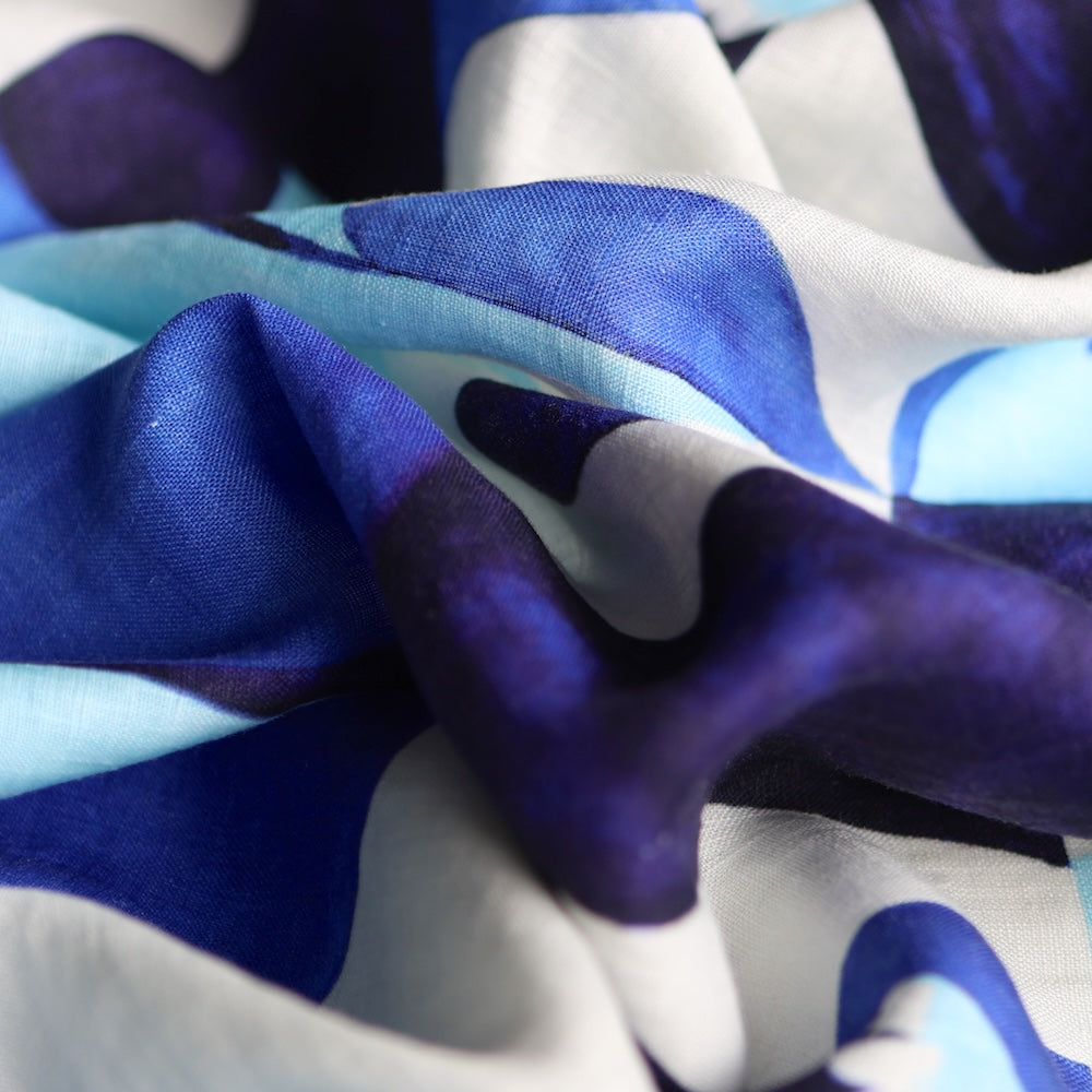 Navy/indigo/sky/off-white striking digital printed 100% linen