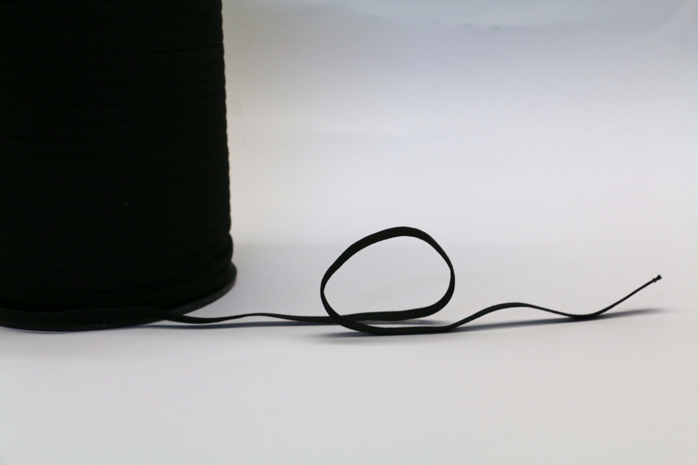 Black 100% polyester 6mm wide elastic.