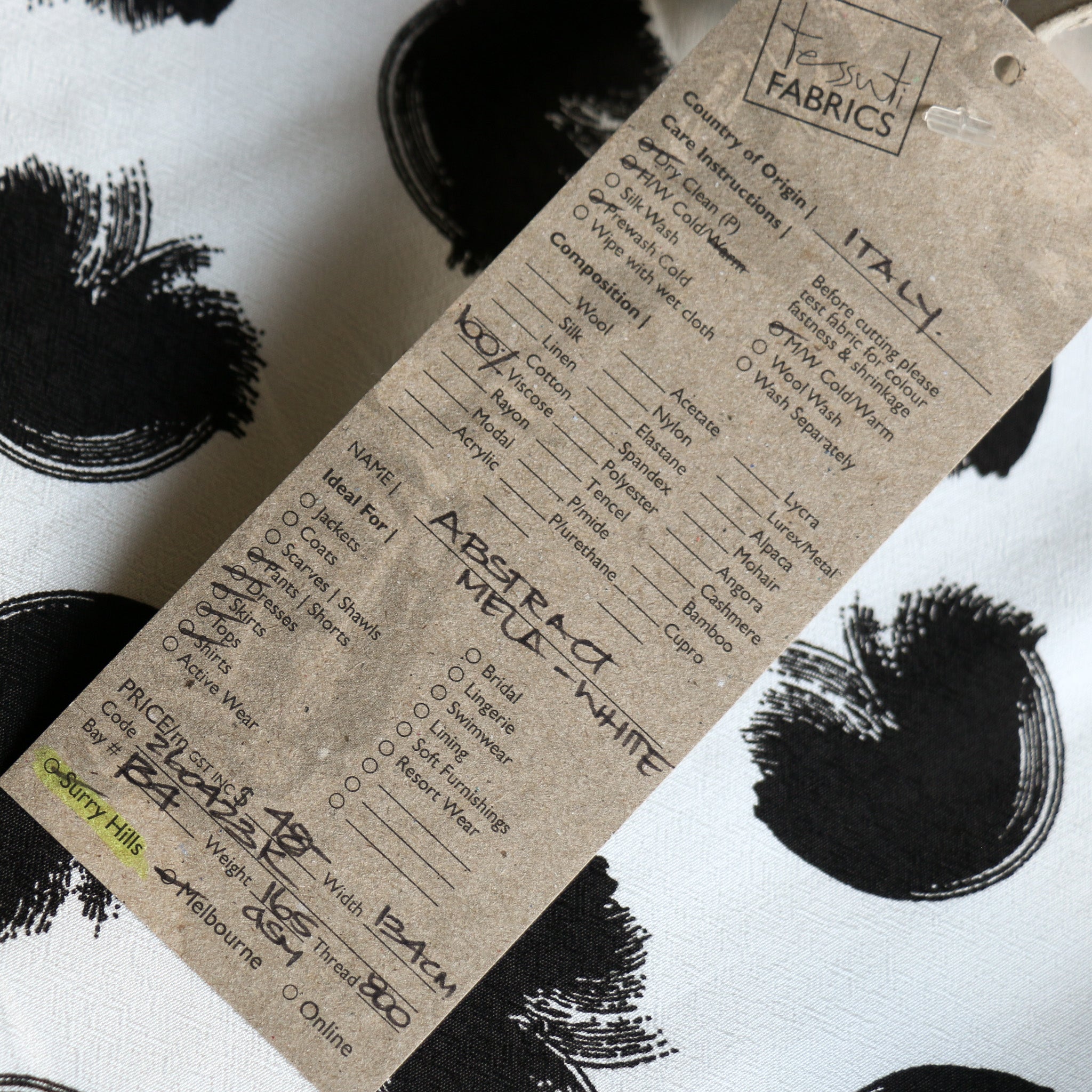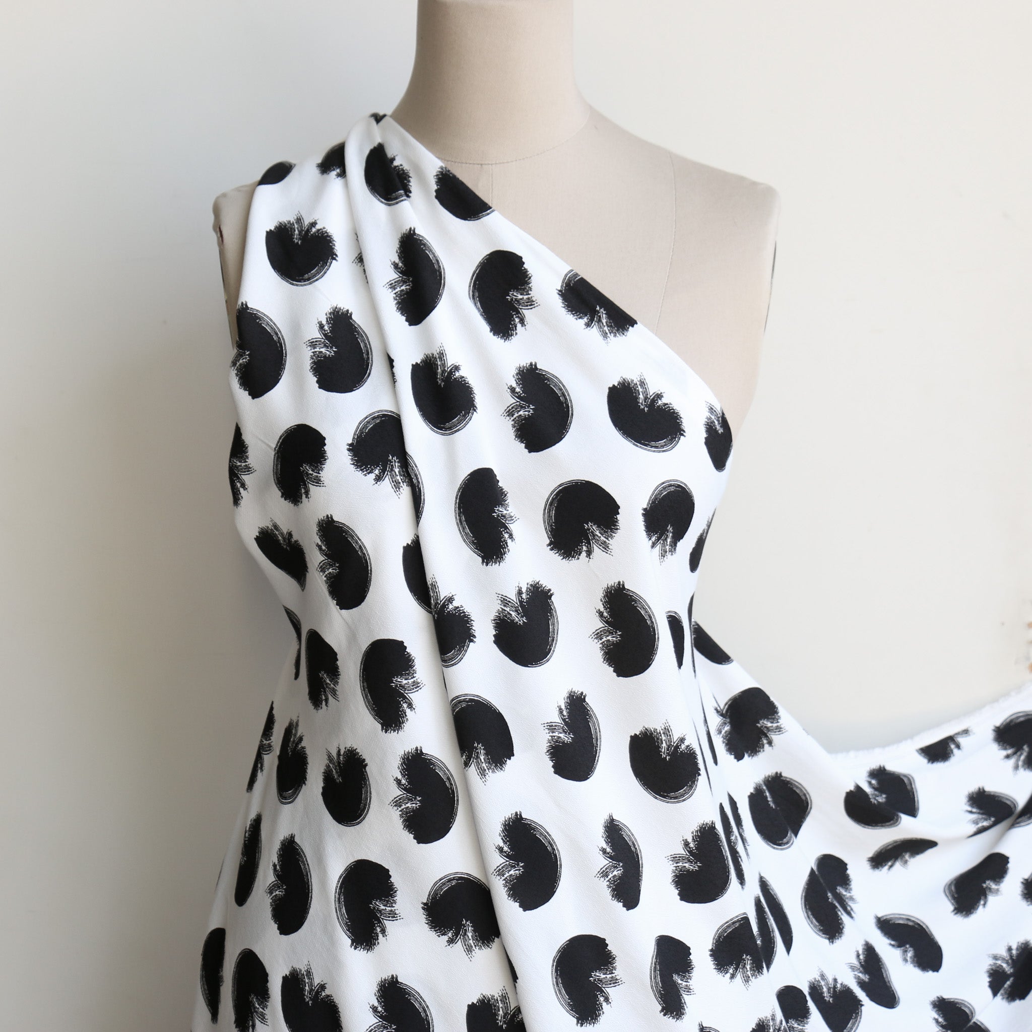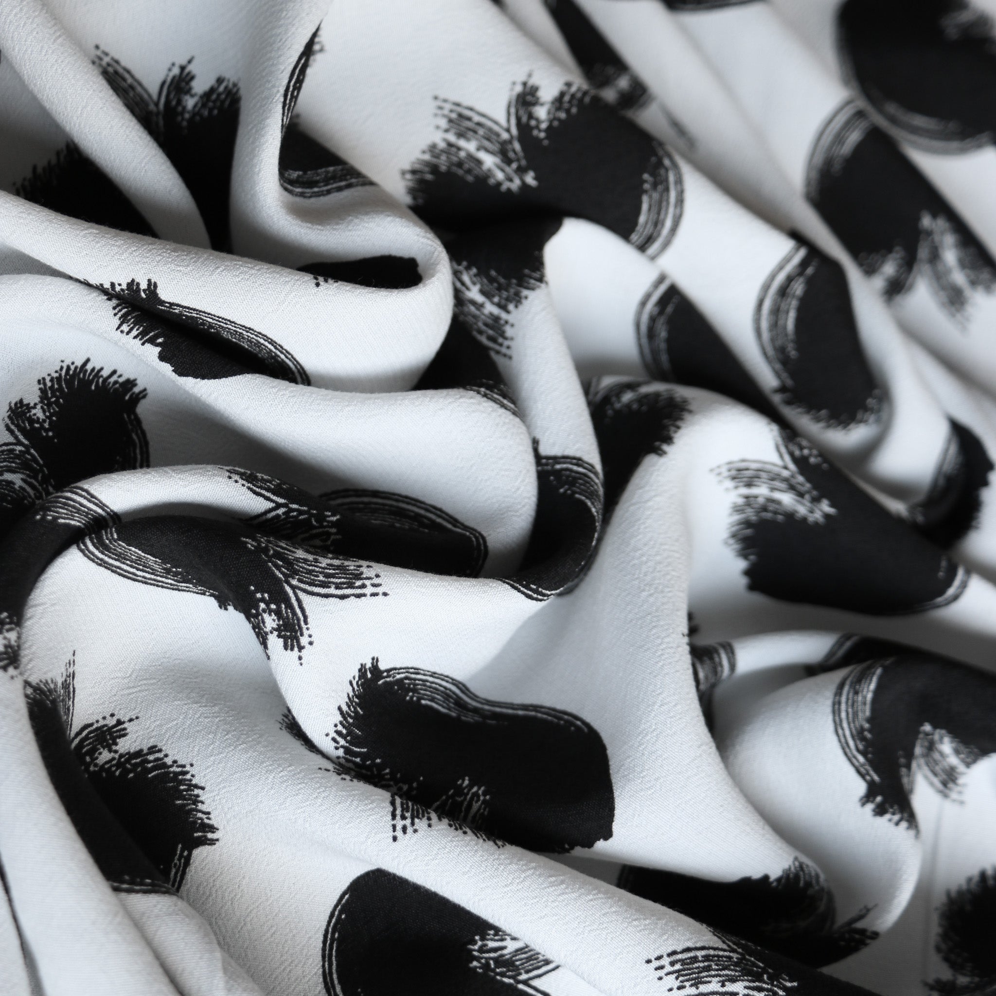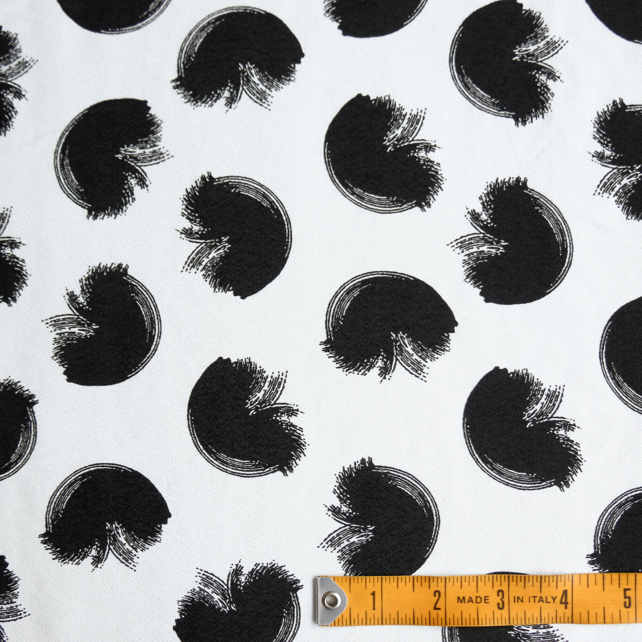 Italian designer white/black abstract apple printed 100% viscose crepe
