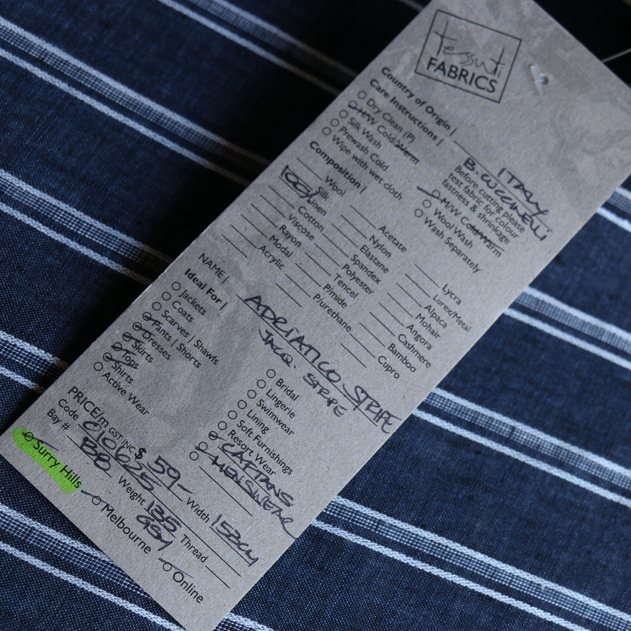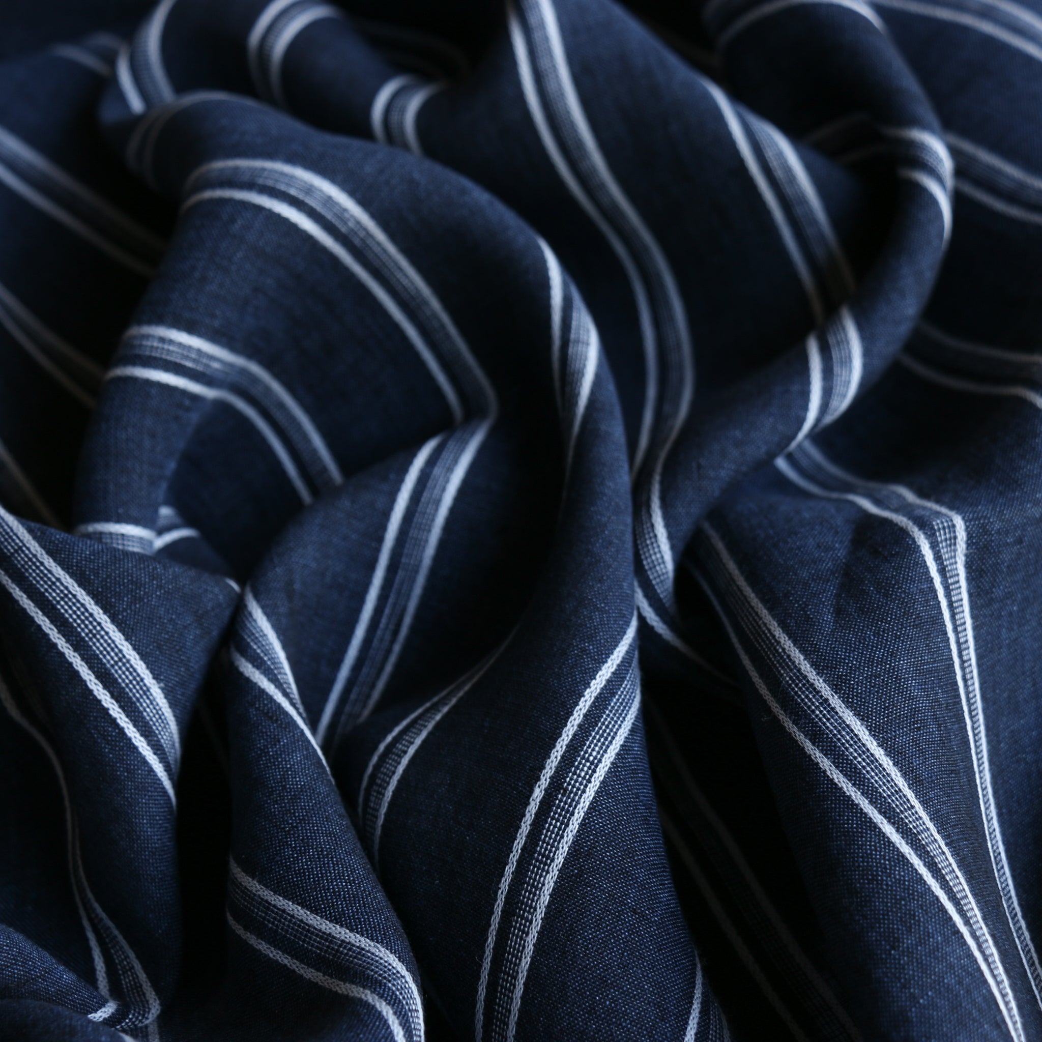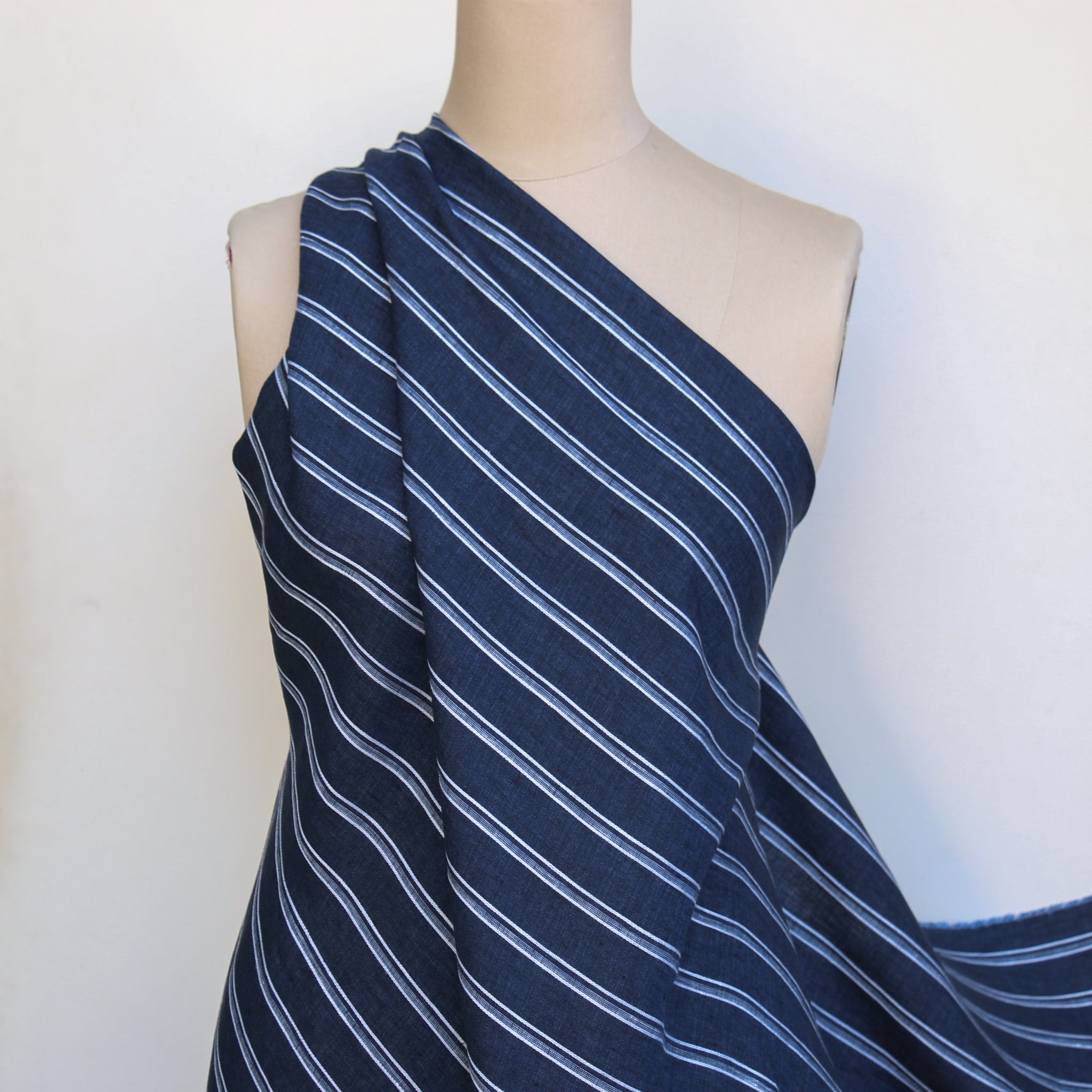 Italian designer yarn dyed navy/white jacquard striped 100% linen