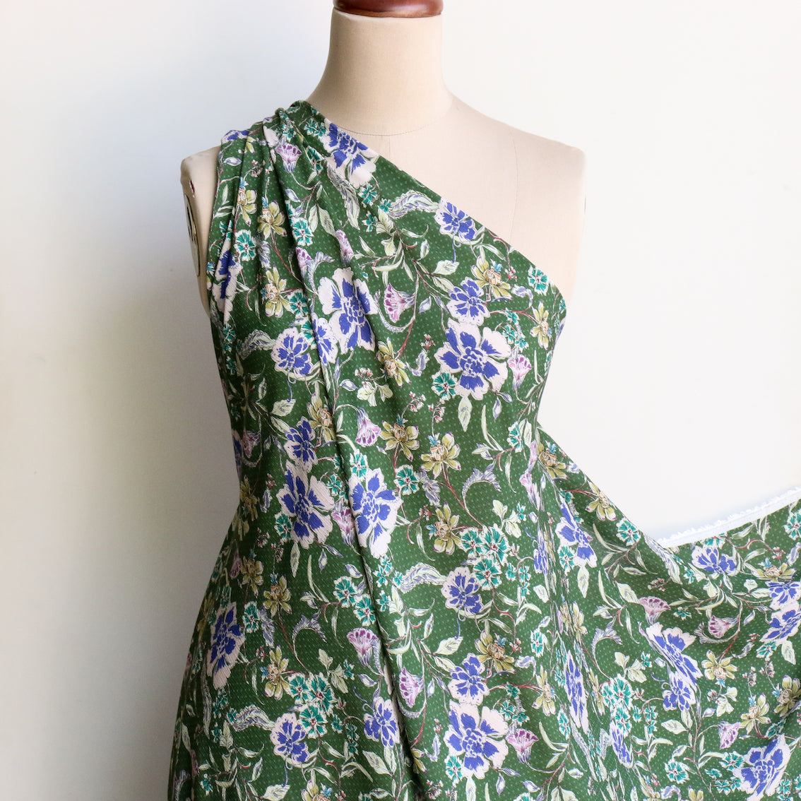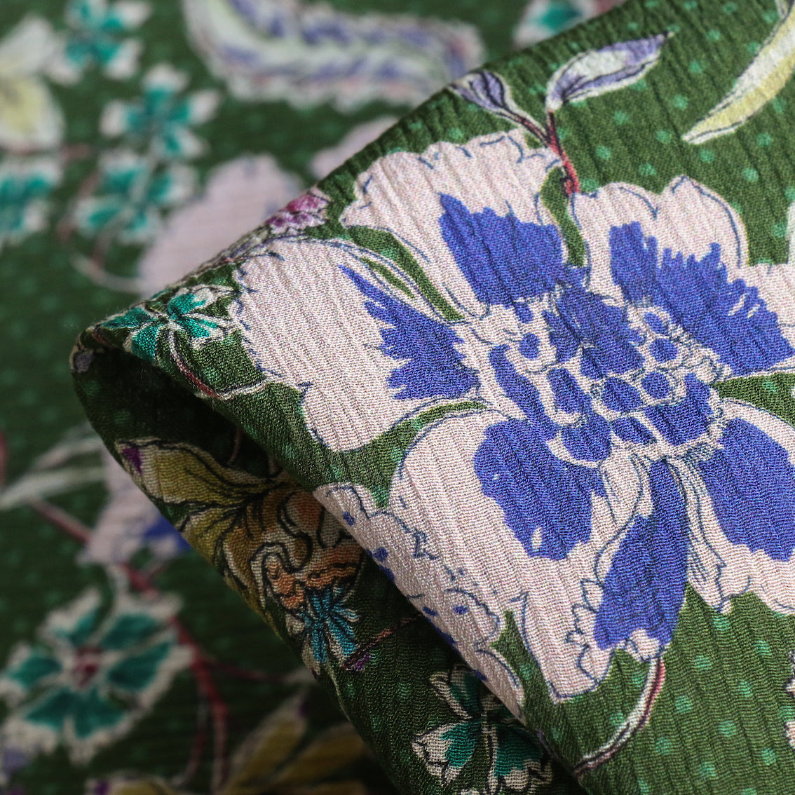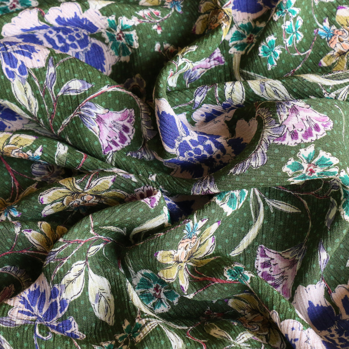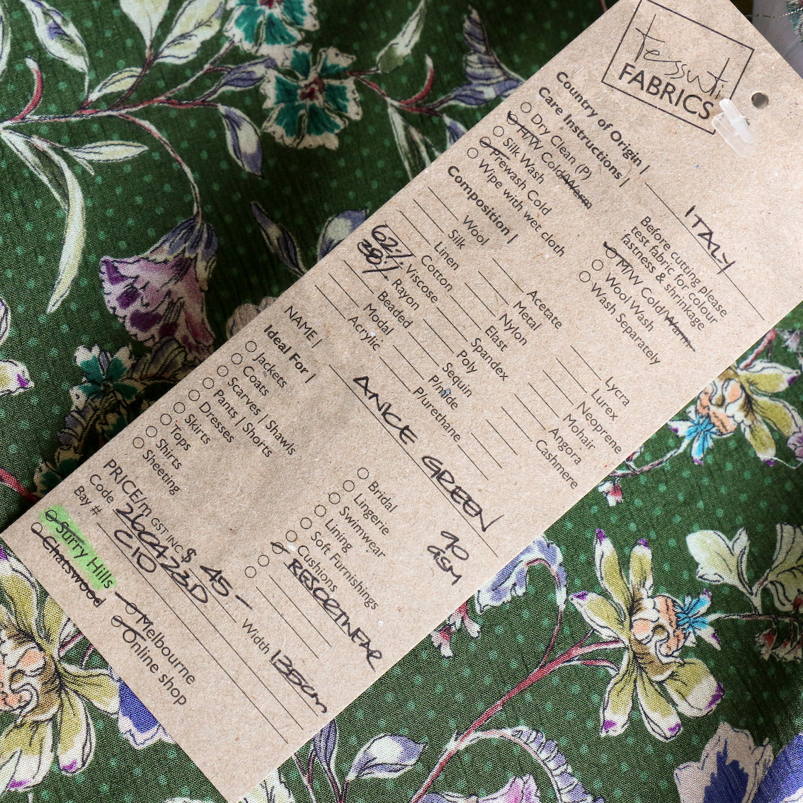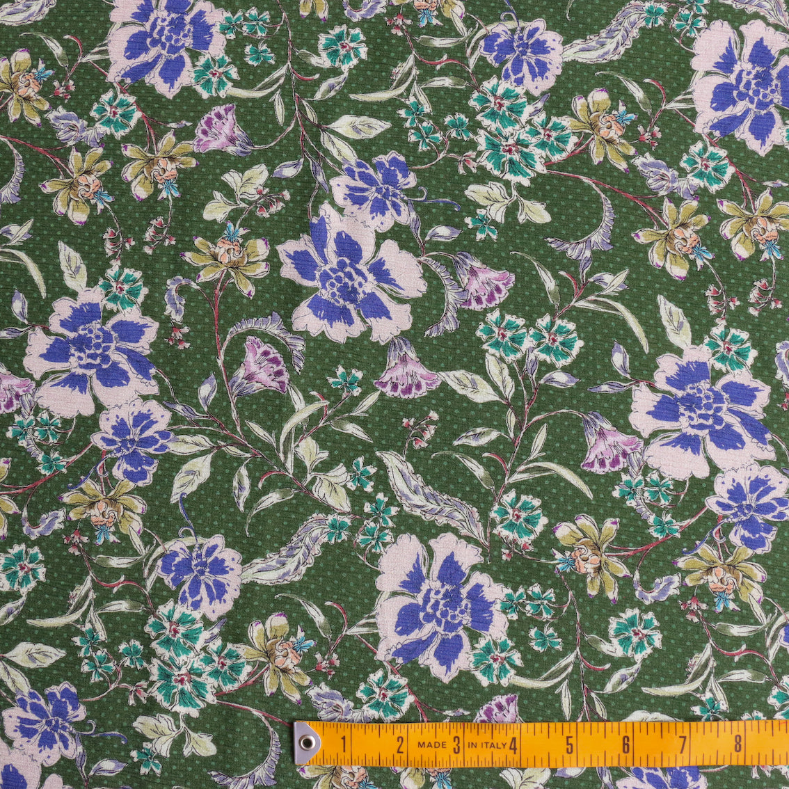 Italian green floral/spot printed 62% viscose 38% rayon