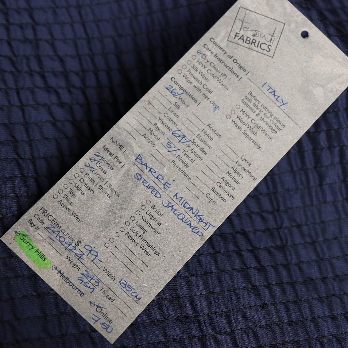 Italian designer navy 69% polyester 26% wool 5% polyamide jacquard