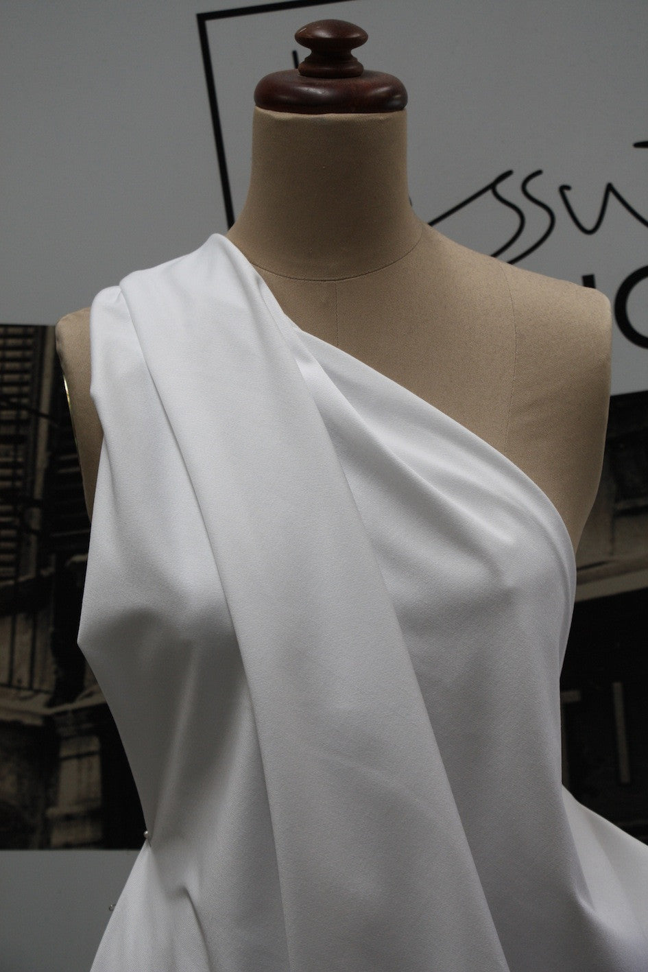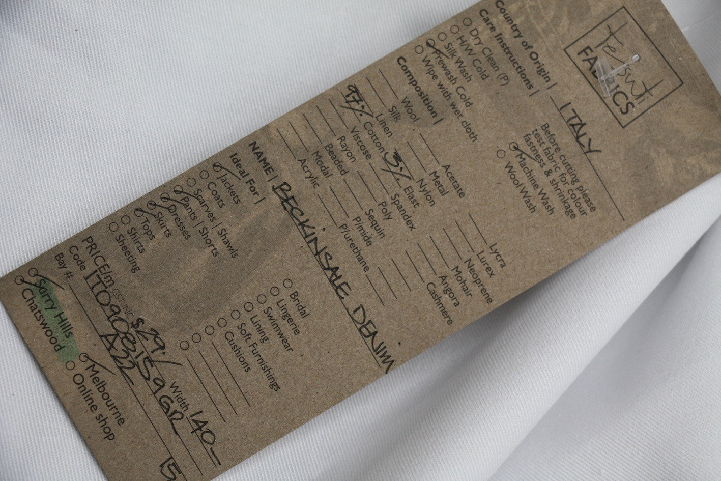 Italian white 97% Cotton 3% Elastane stretch denim. Width:140cm