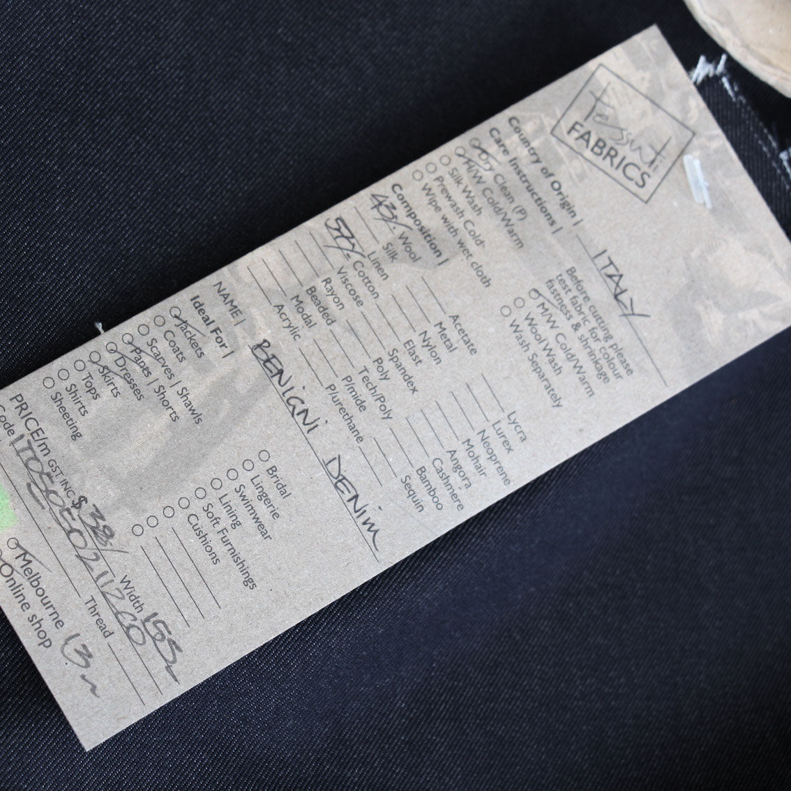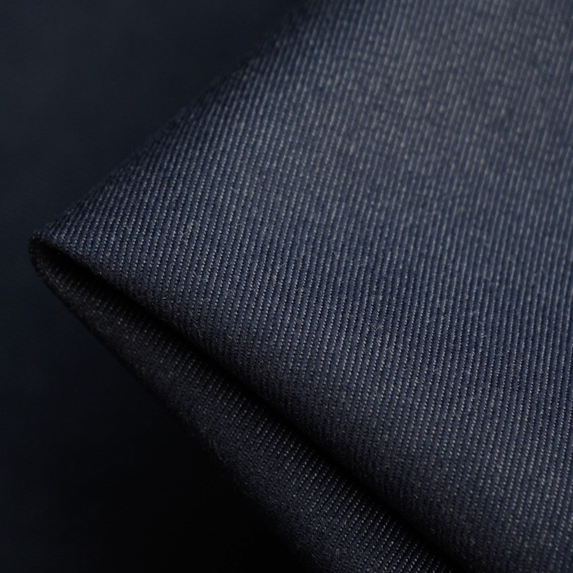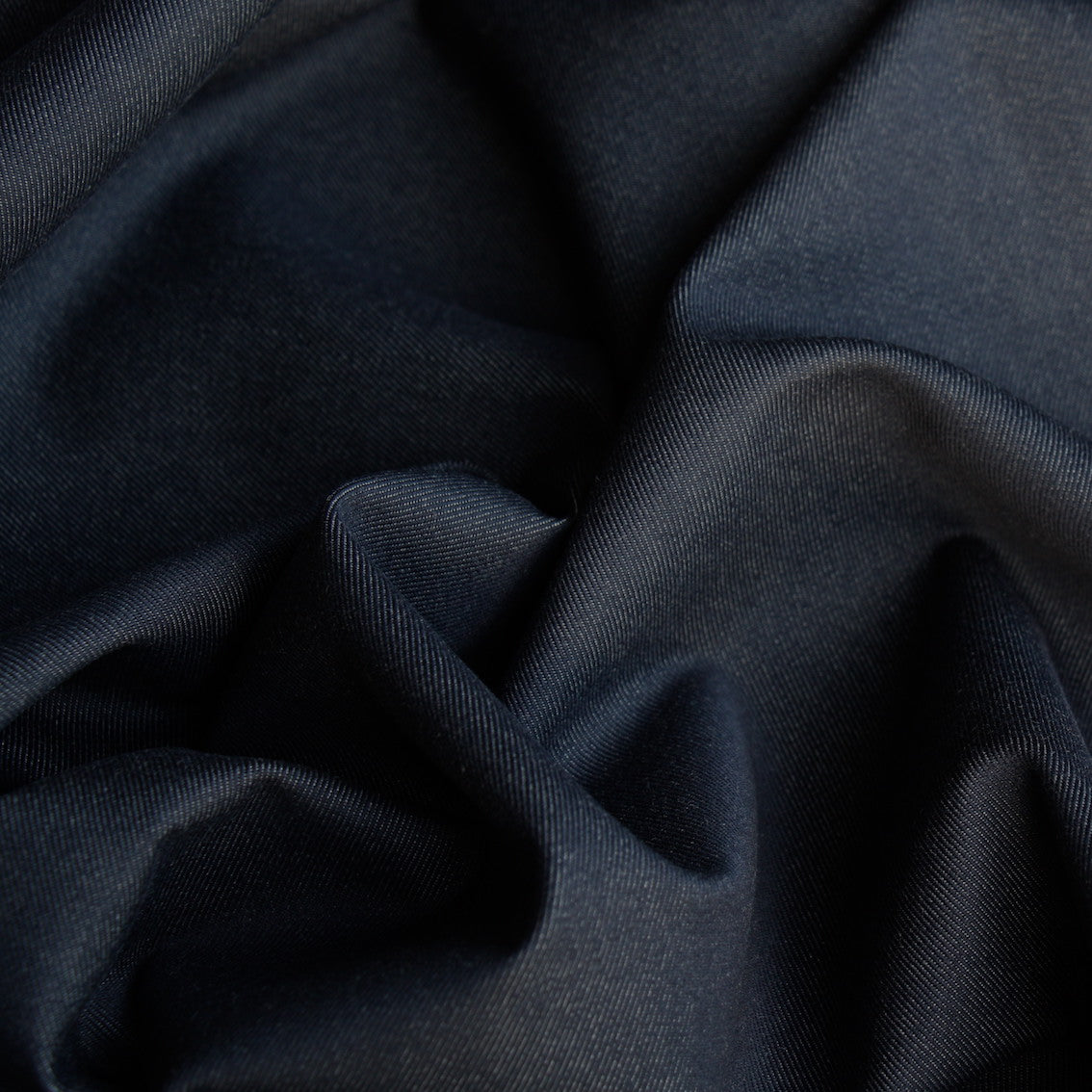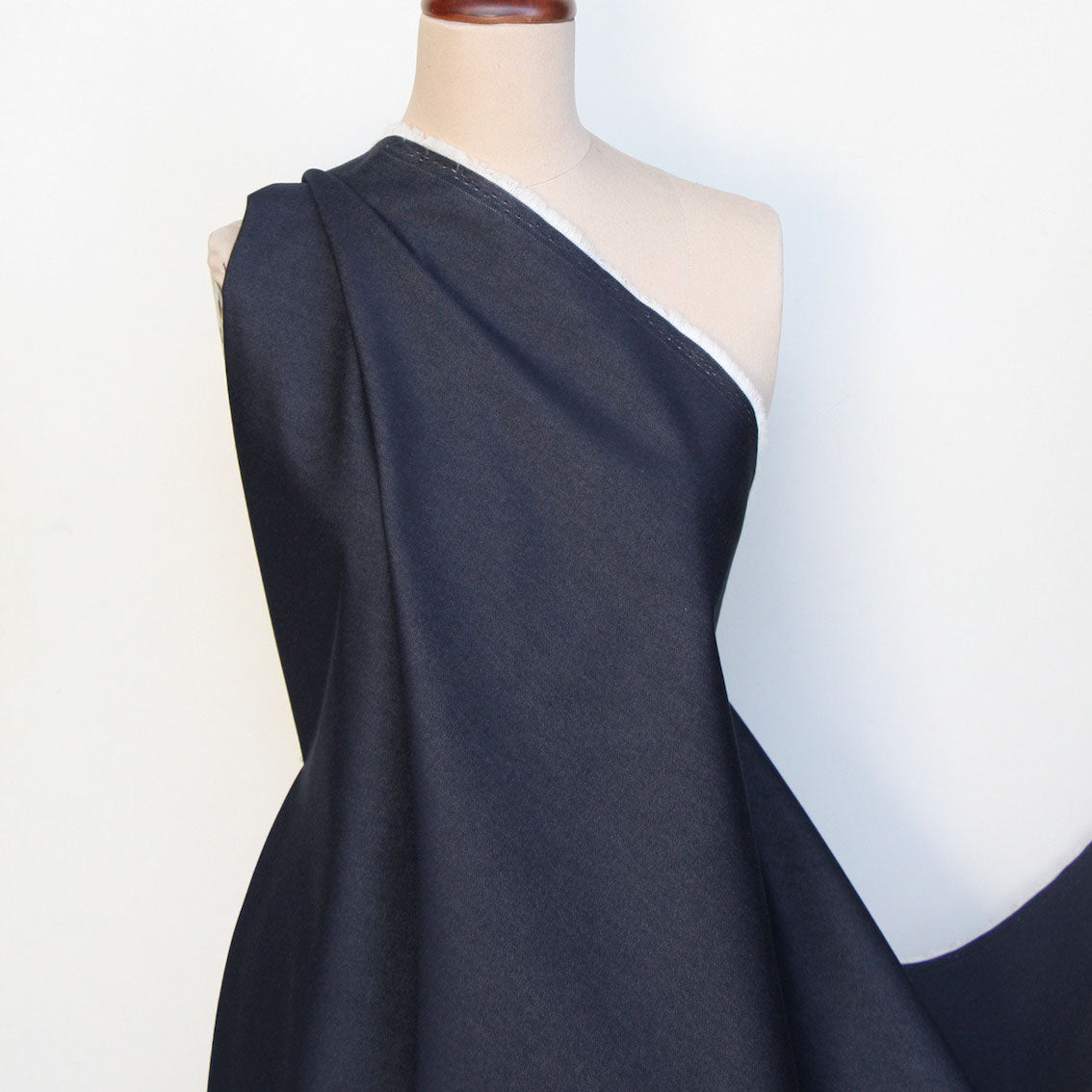 Designer Italian dark navy 57% cotton 43% wool medium weight denim.