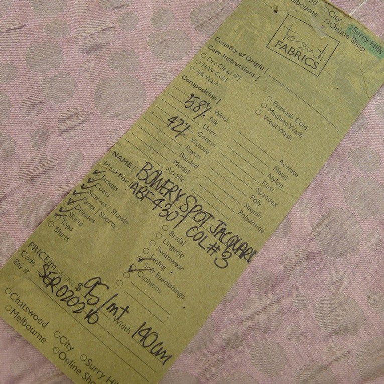 Stunning Silk/ Viscose spot jacquard taffetta. Width:140cm.