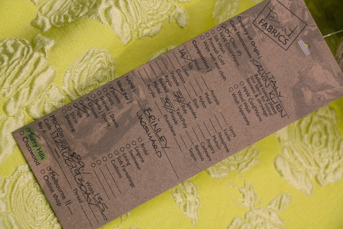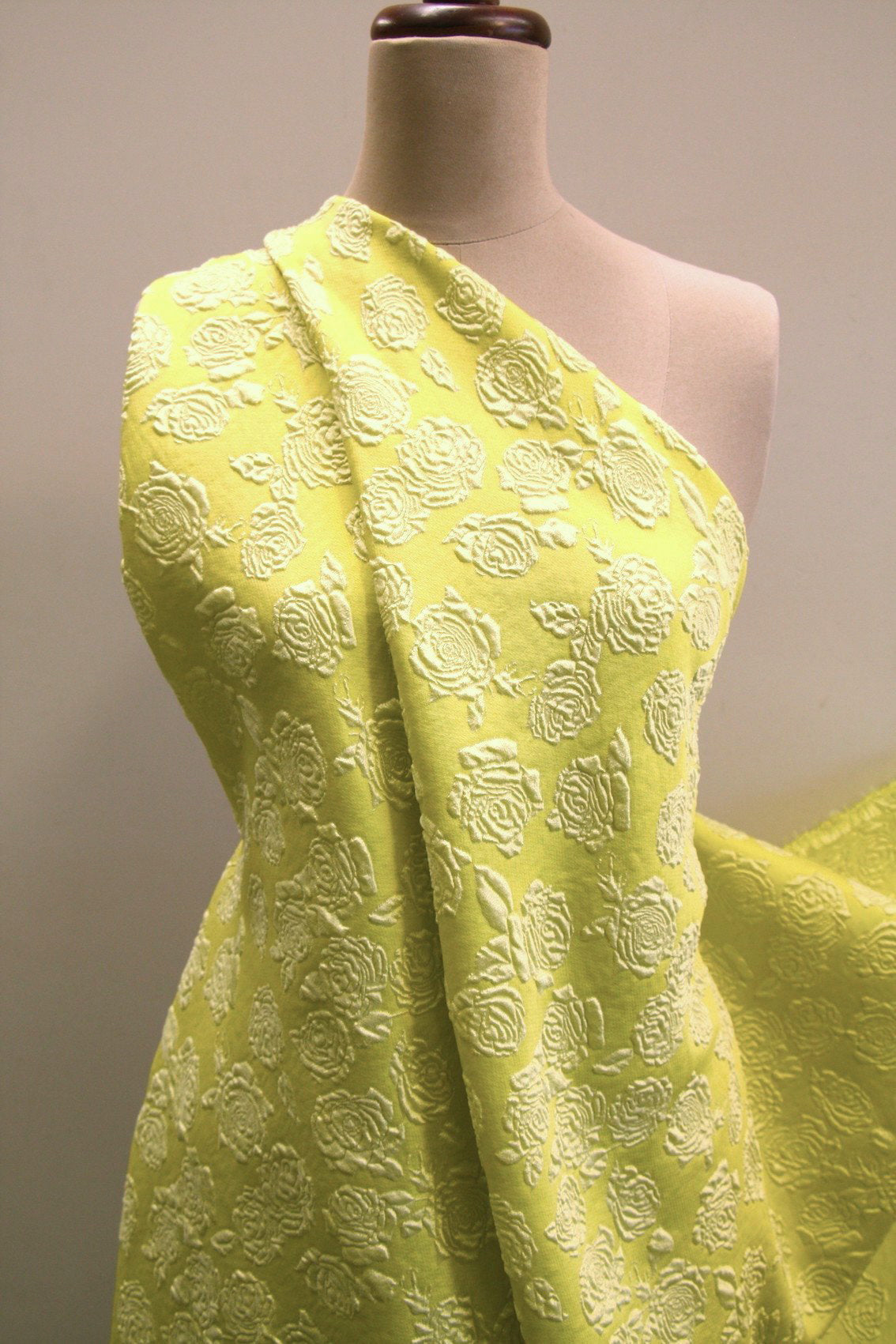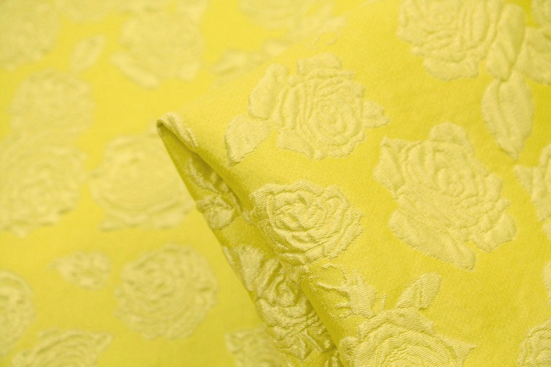 Italian citrus yellow jacquard 56% polyester 30% polyamide 14% silk. Width:130cm