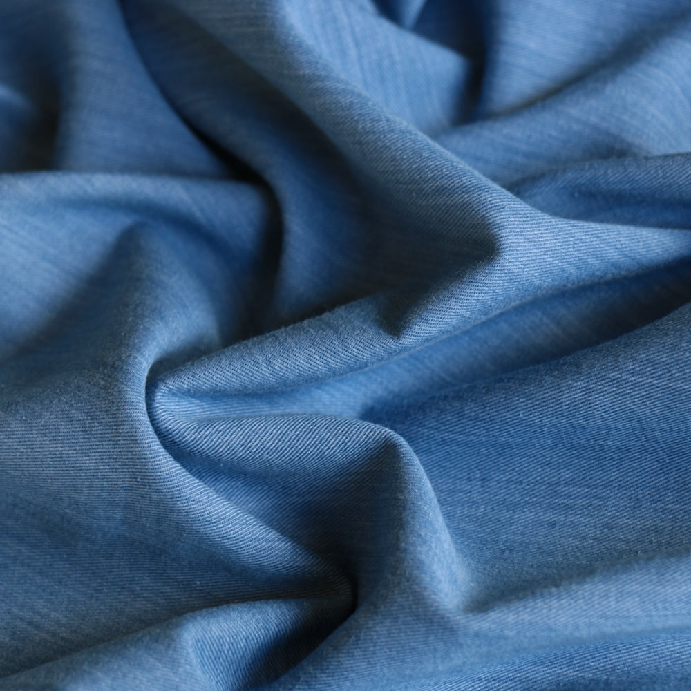 Italian light blue washed 100% cotton lightweight denim