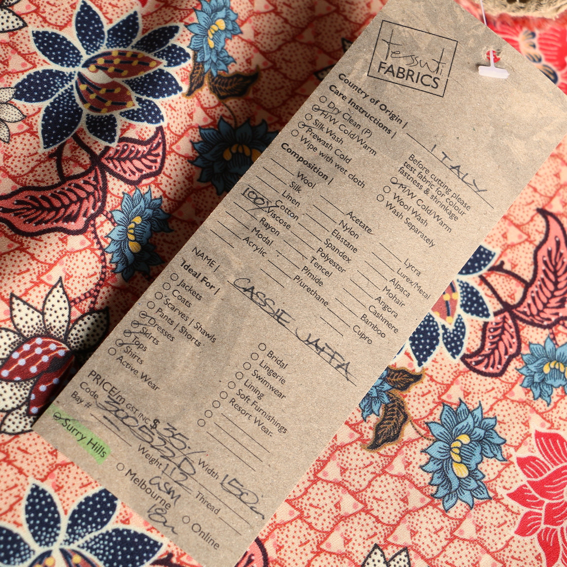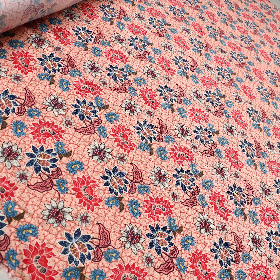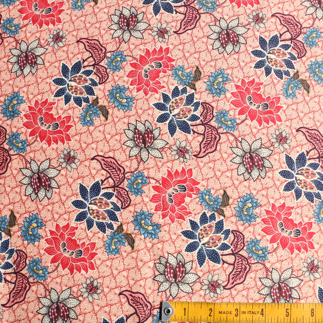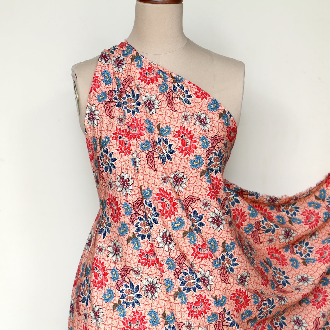 Italian peach/terracotta/batik floral printed 100% viscose poplin