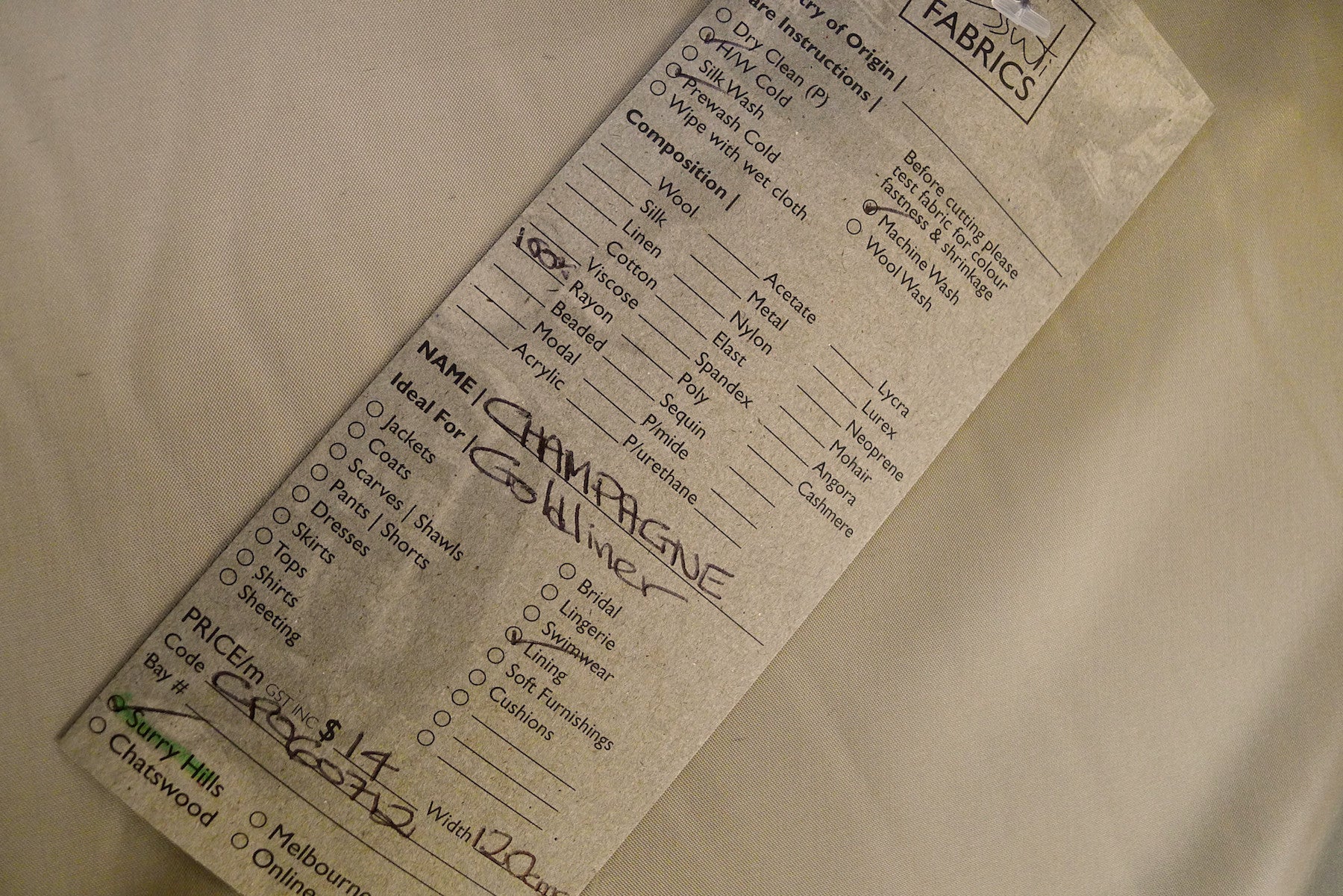 Champagne Rayon Lining