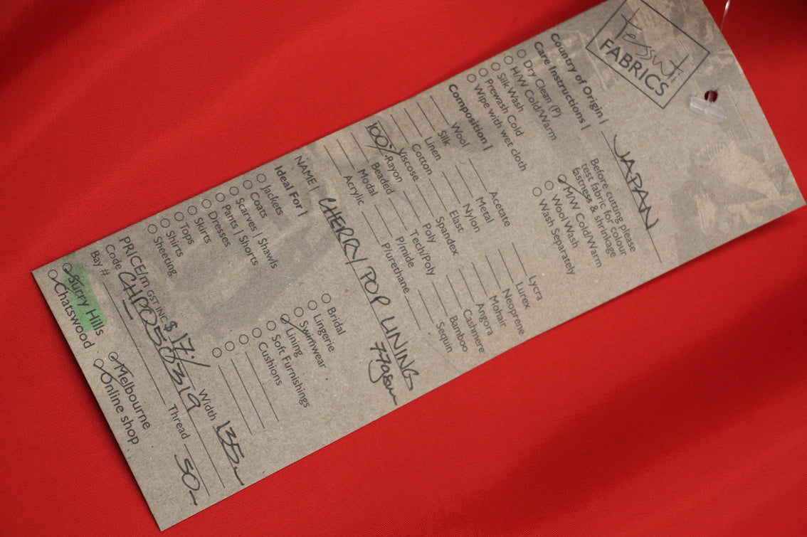 Japanese 100% Bemberg Rayon Lining. Width:137cm
