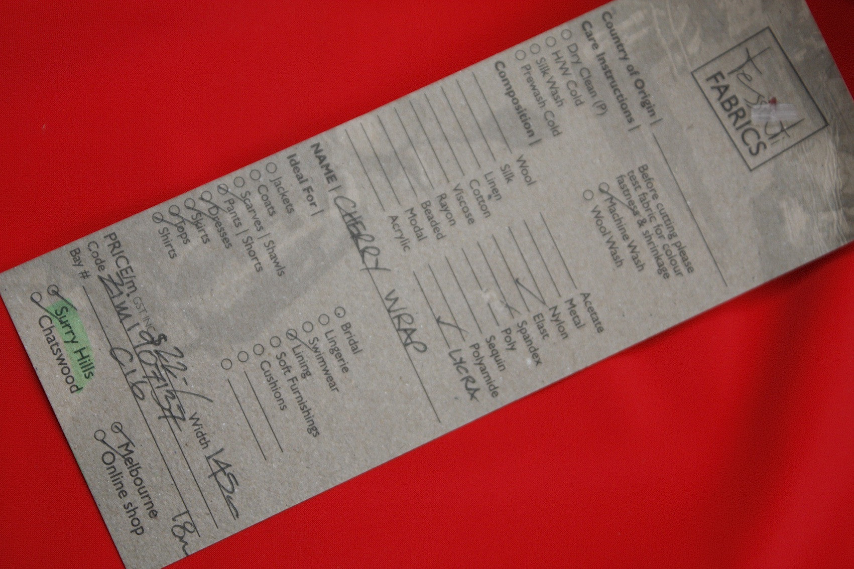 This gorgeous red coloured nylon/lycra is ideal for swimwear, rashies, leggings and tank tops or dresses etc