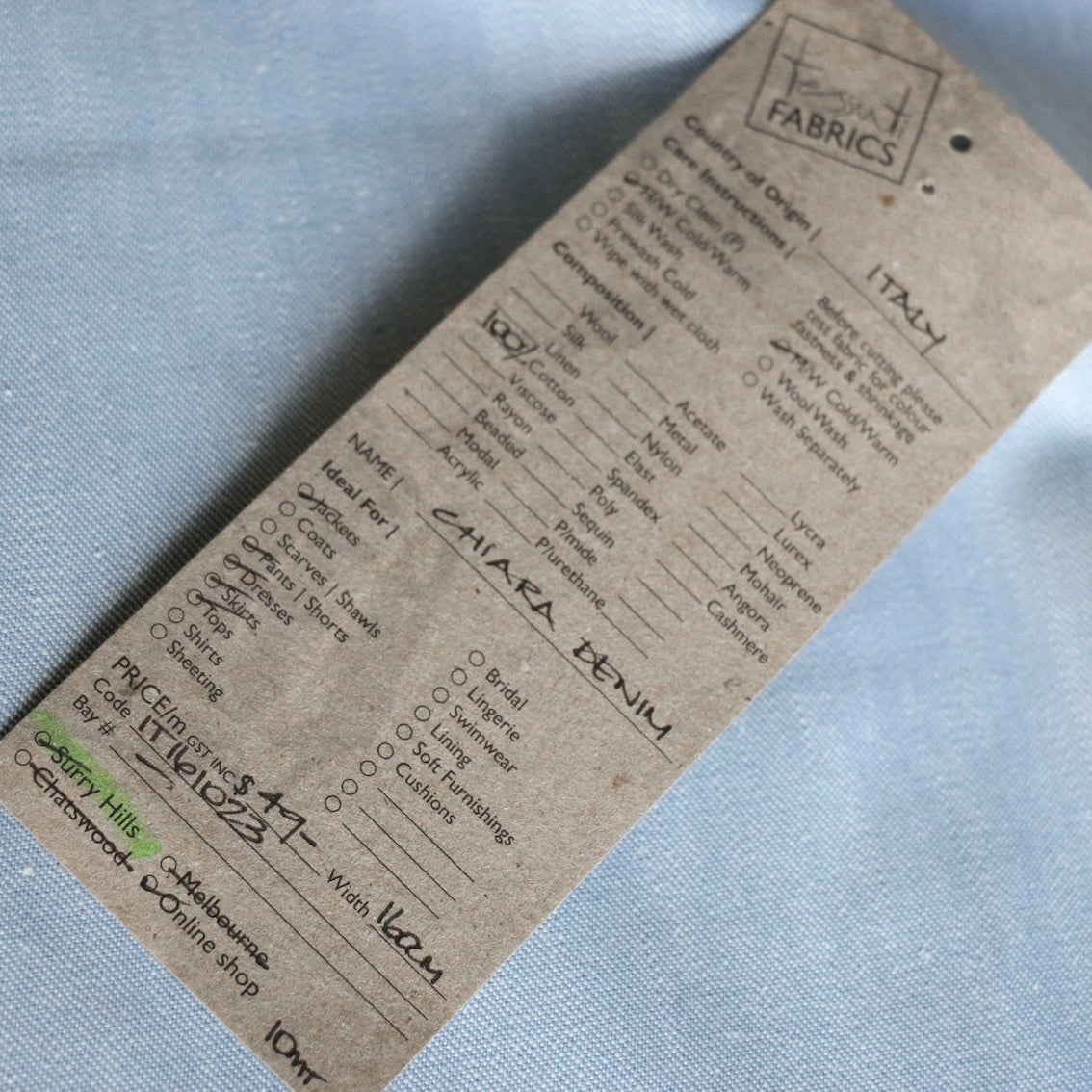 Italian pale blue 100% cotton denim