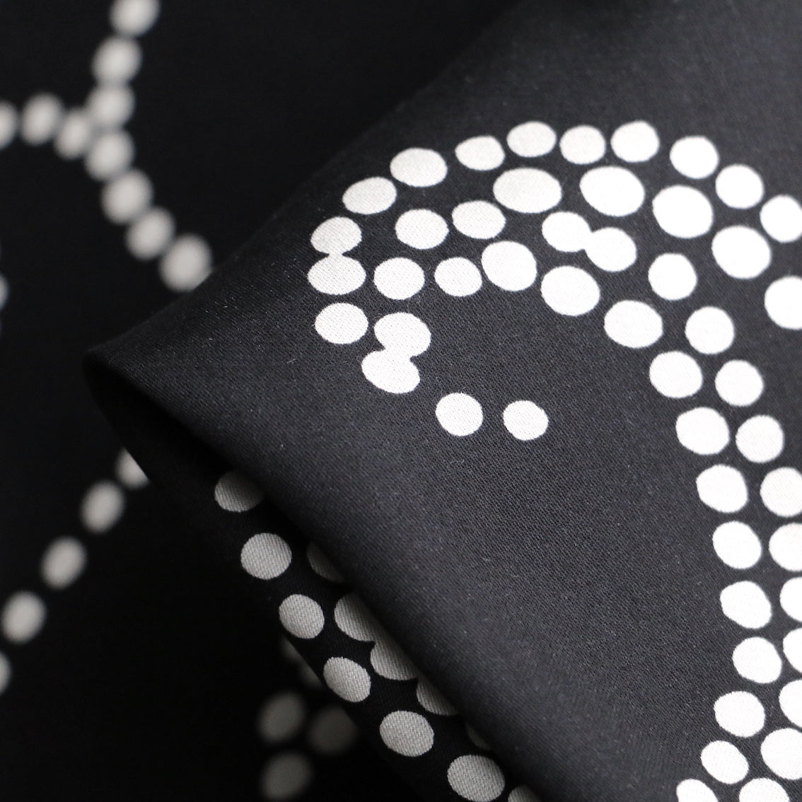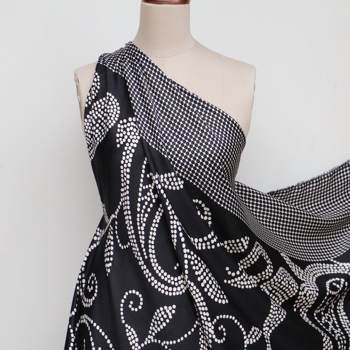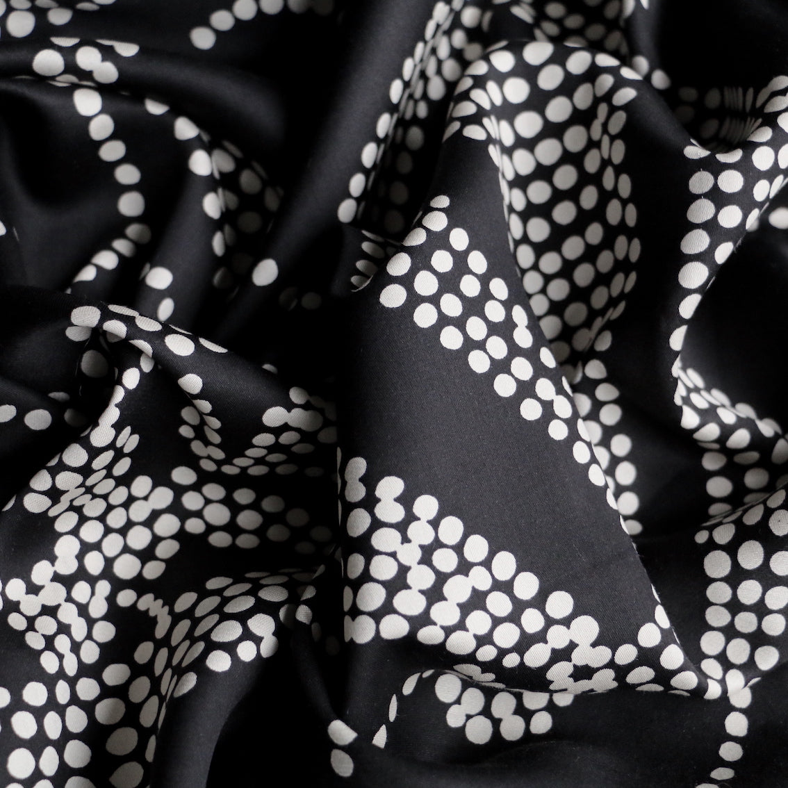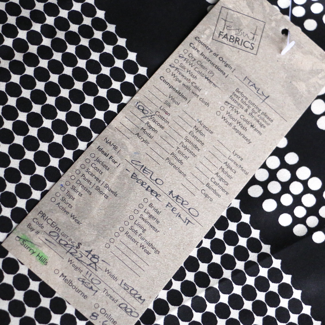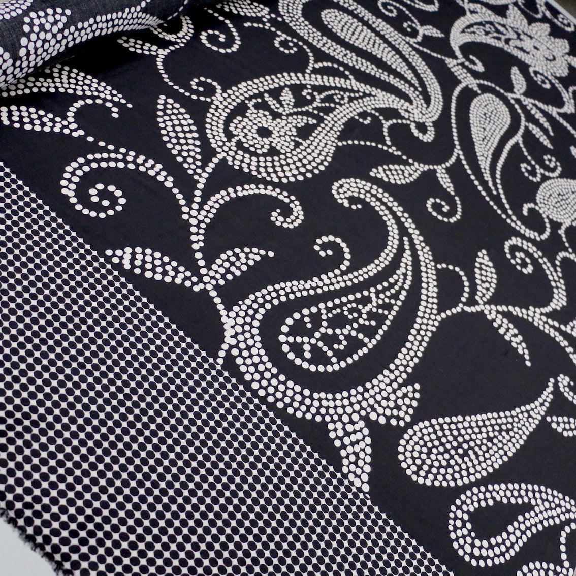 Italian designer black/off-white spot floral with border print 100% viscose poplin