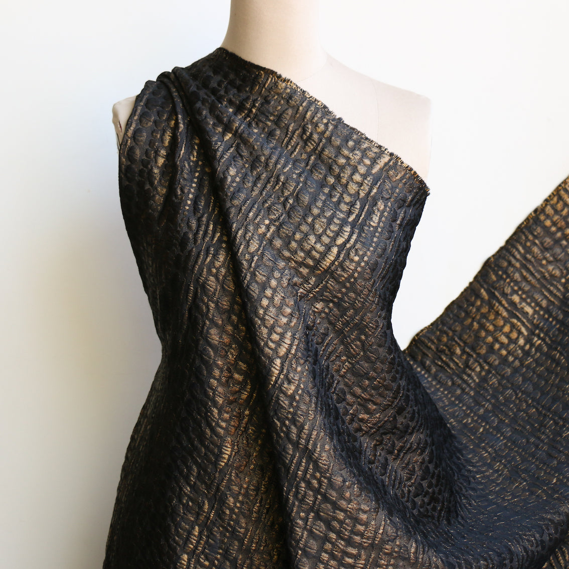 Italian designer antique gold/black textured cotton/polyamide/lurex spot jacquard