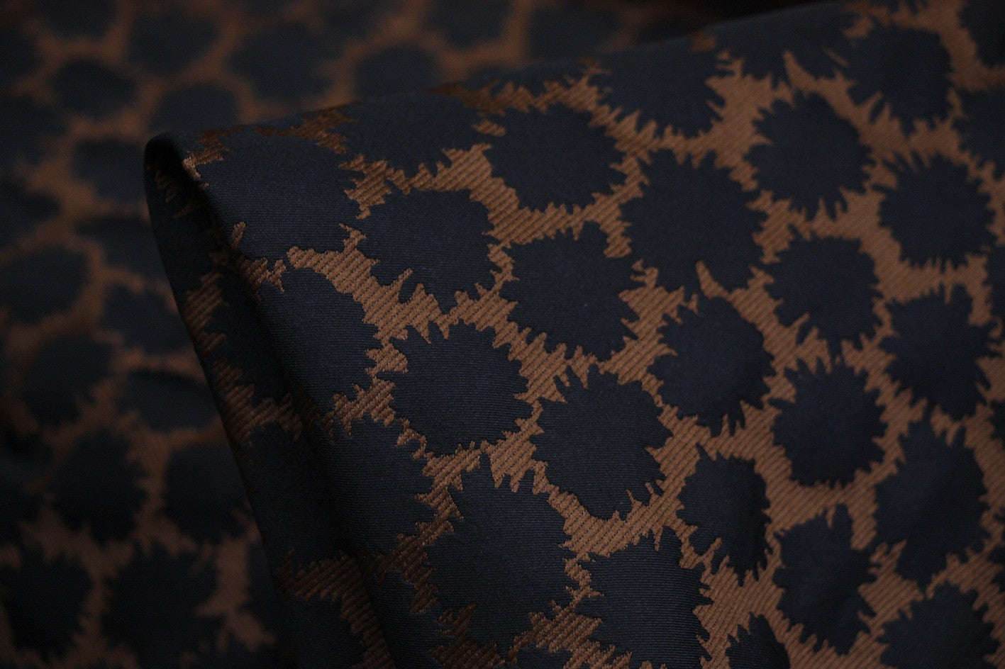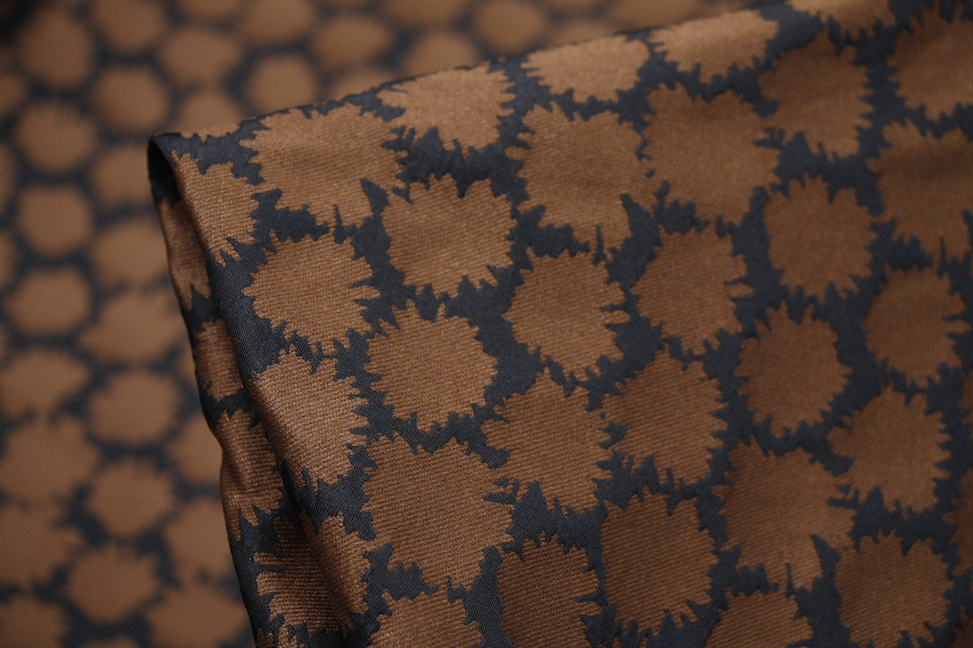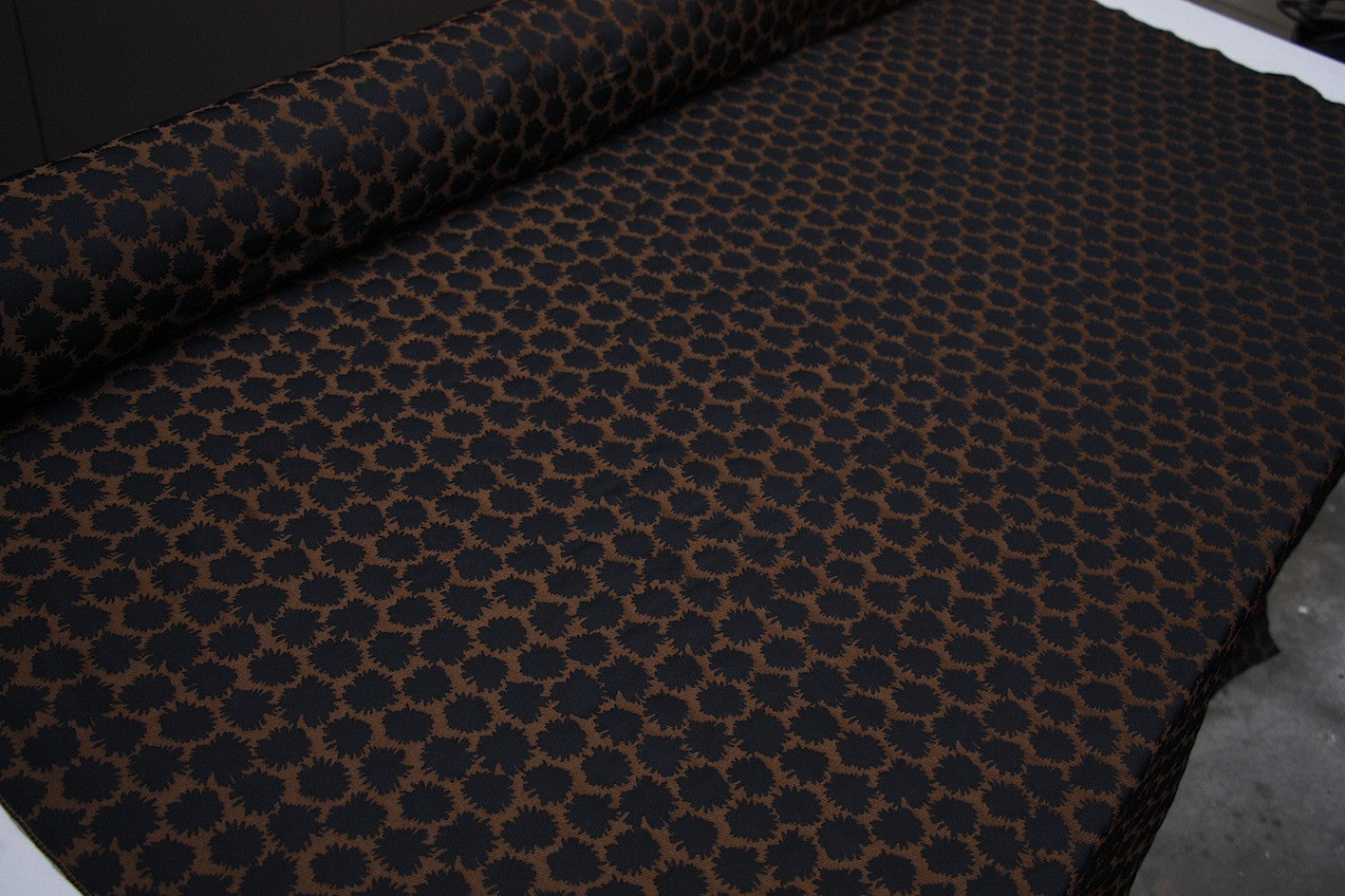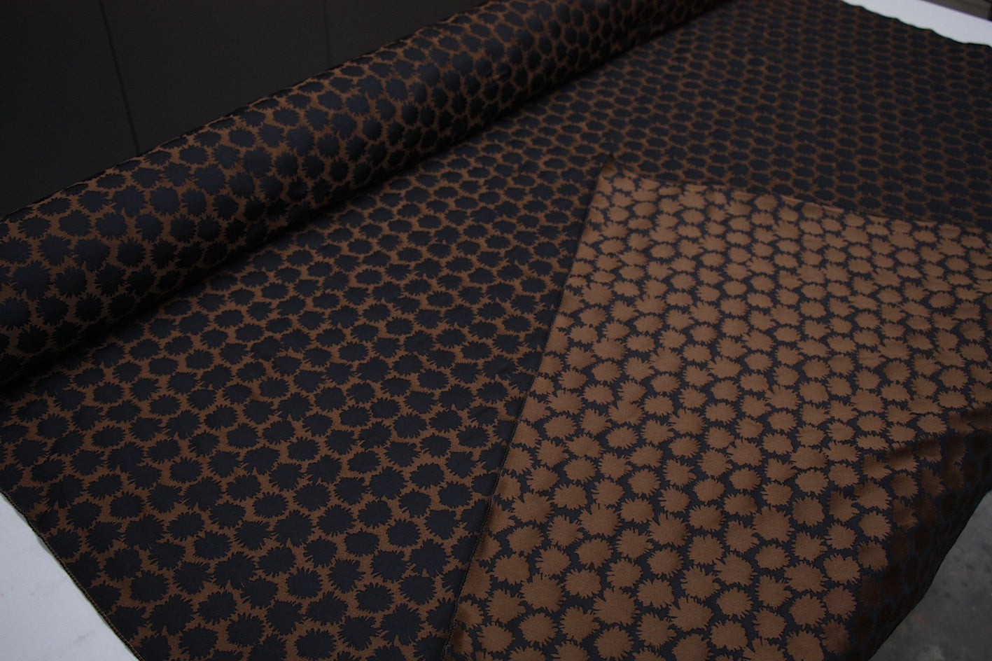 Italian designer reversible black/bronze 100% polyester jacquard. Width:138cm