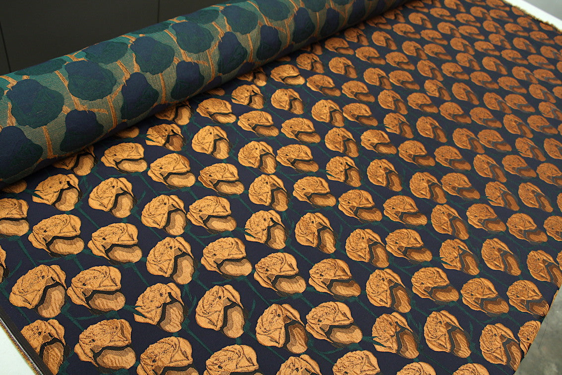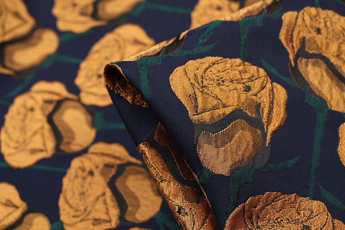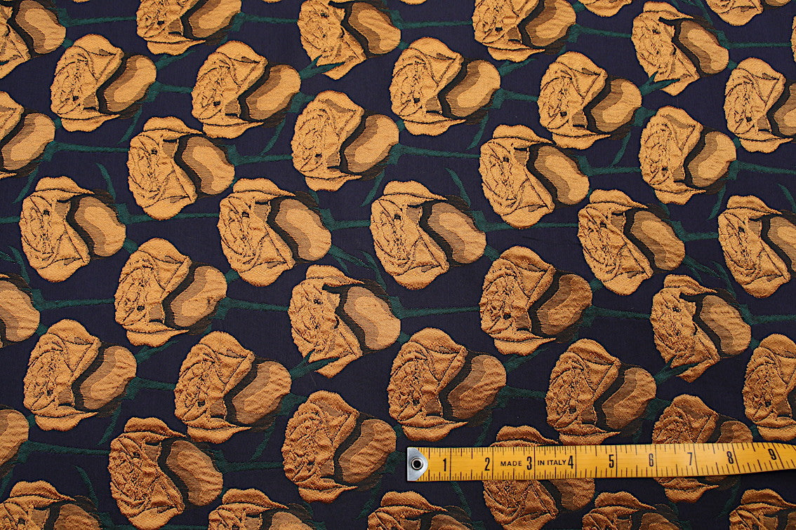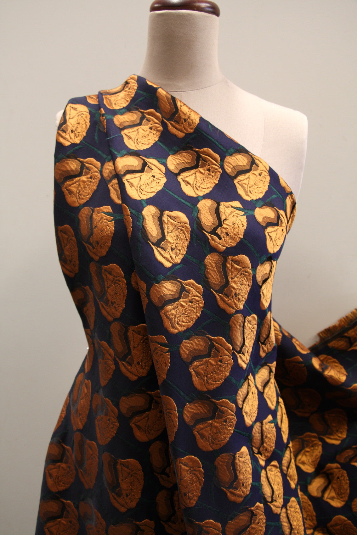 Italian designer navy/copper floral jacquard 70% viscose 30% polyester brocade. Width: 150cm Weight: 215gsm