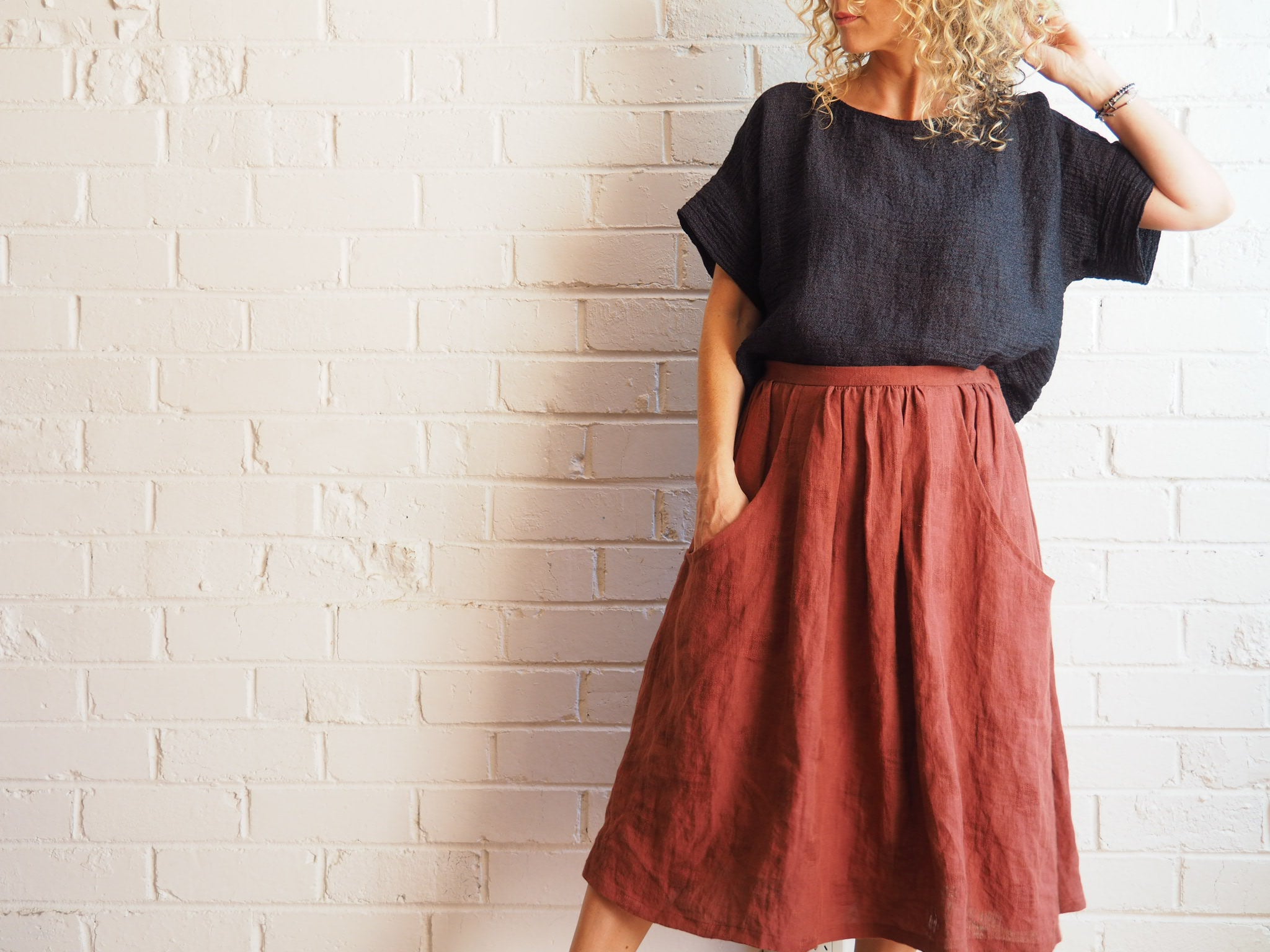 This medium weight linen is ideal for relaxed jackets, skirts, pants, tops etc. Ideal for our Tokyo Jacket, Evie Bias Skirt and Kate Top patterns. Not suitable for pants