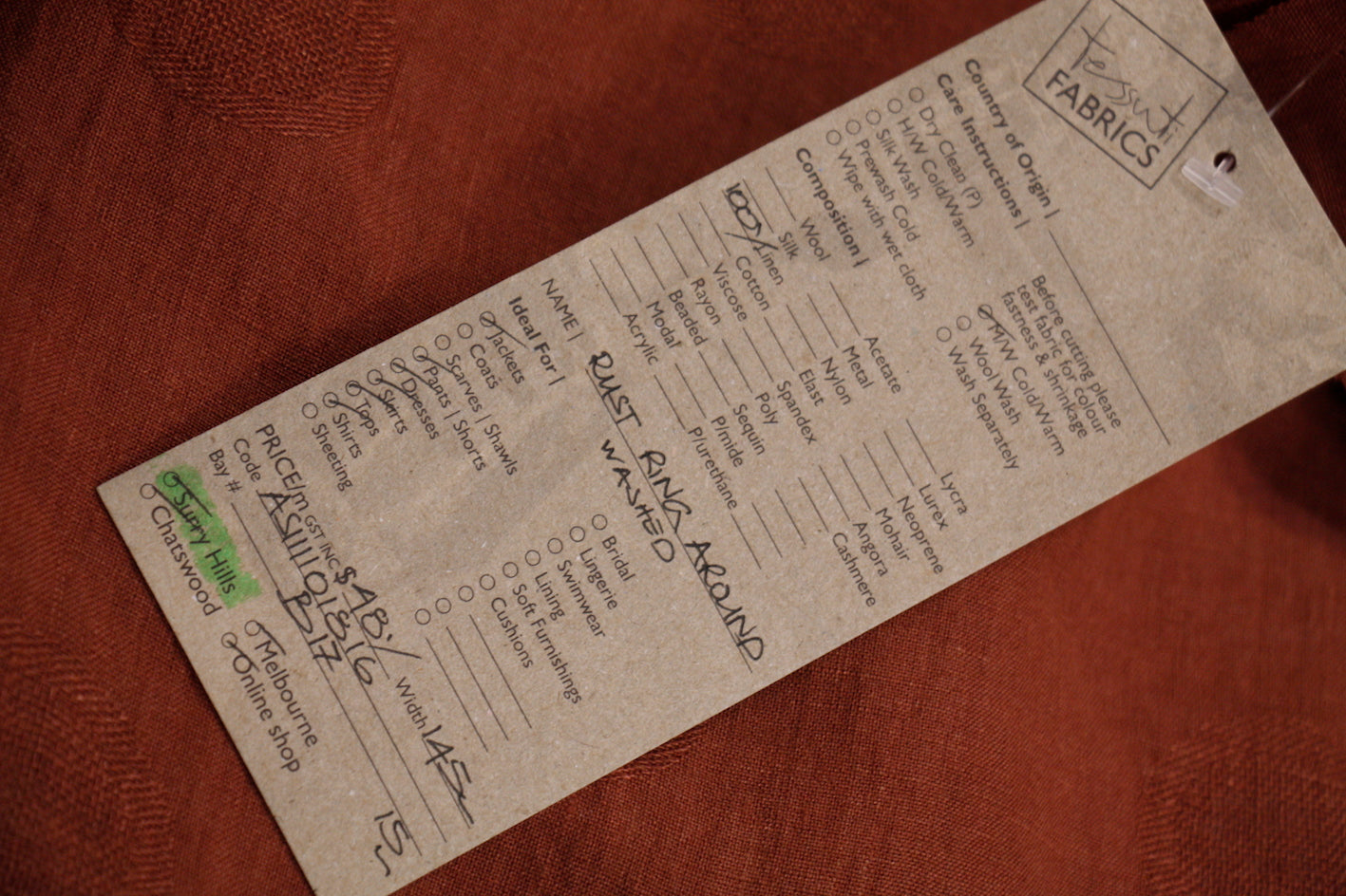 Available at all Tessuti stores and online . Available in other colourways.