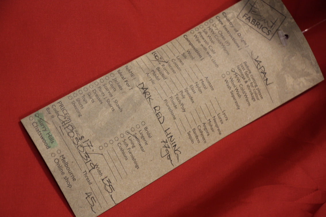 Dark red Japanese 100% bemberg rayon lining. Width:137cm