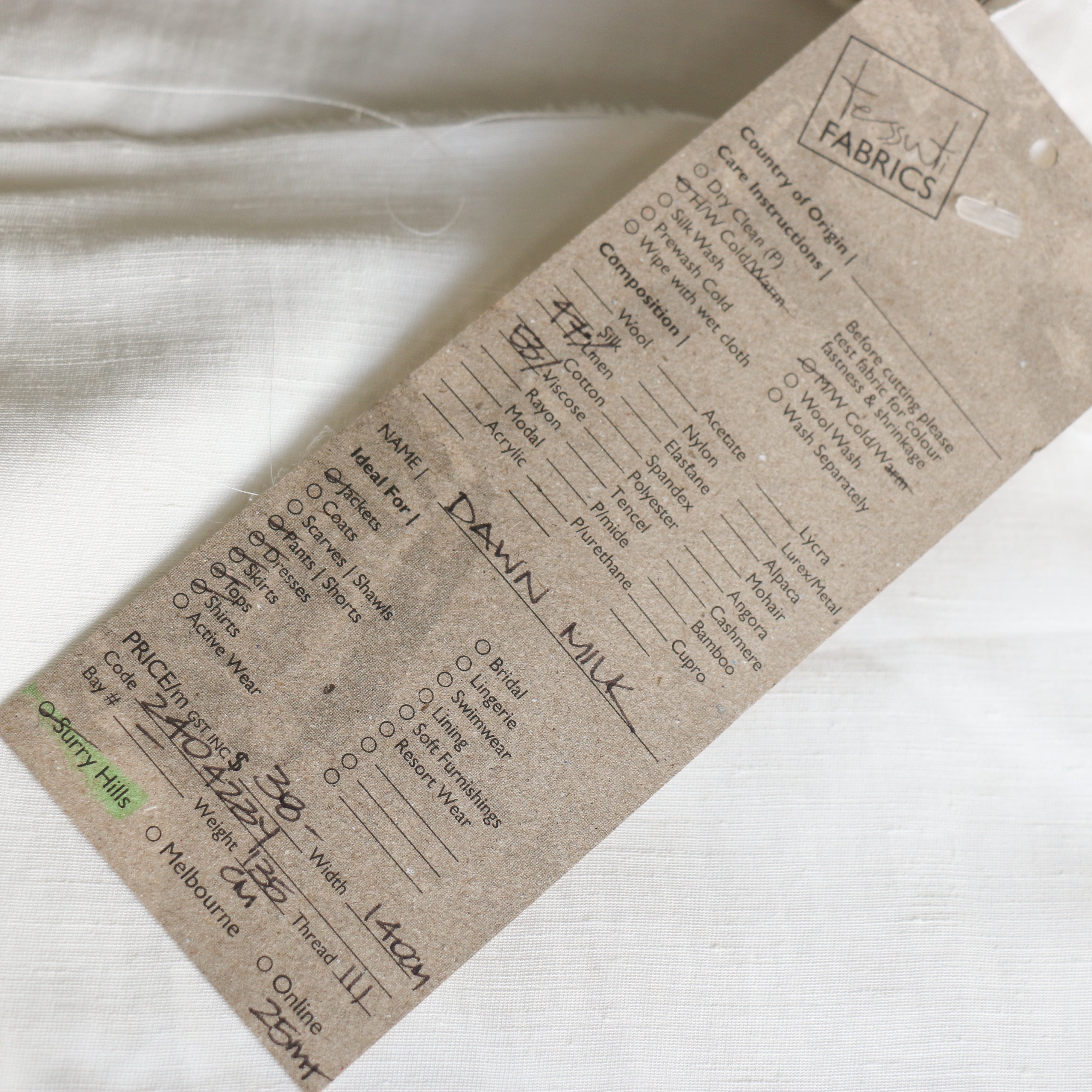 Milk white satin backed 53% viscose 47% linen