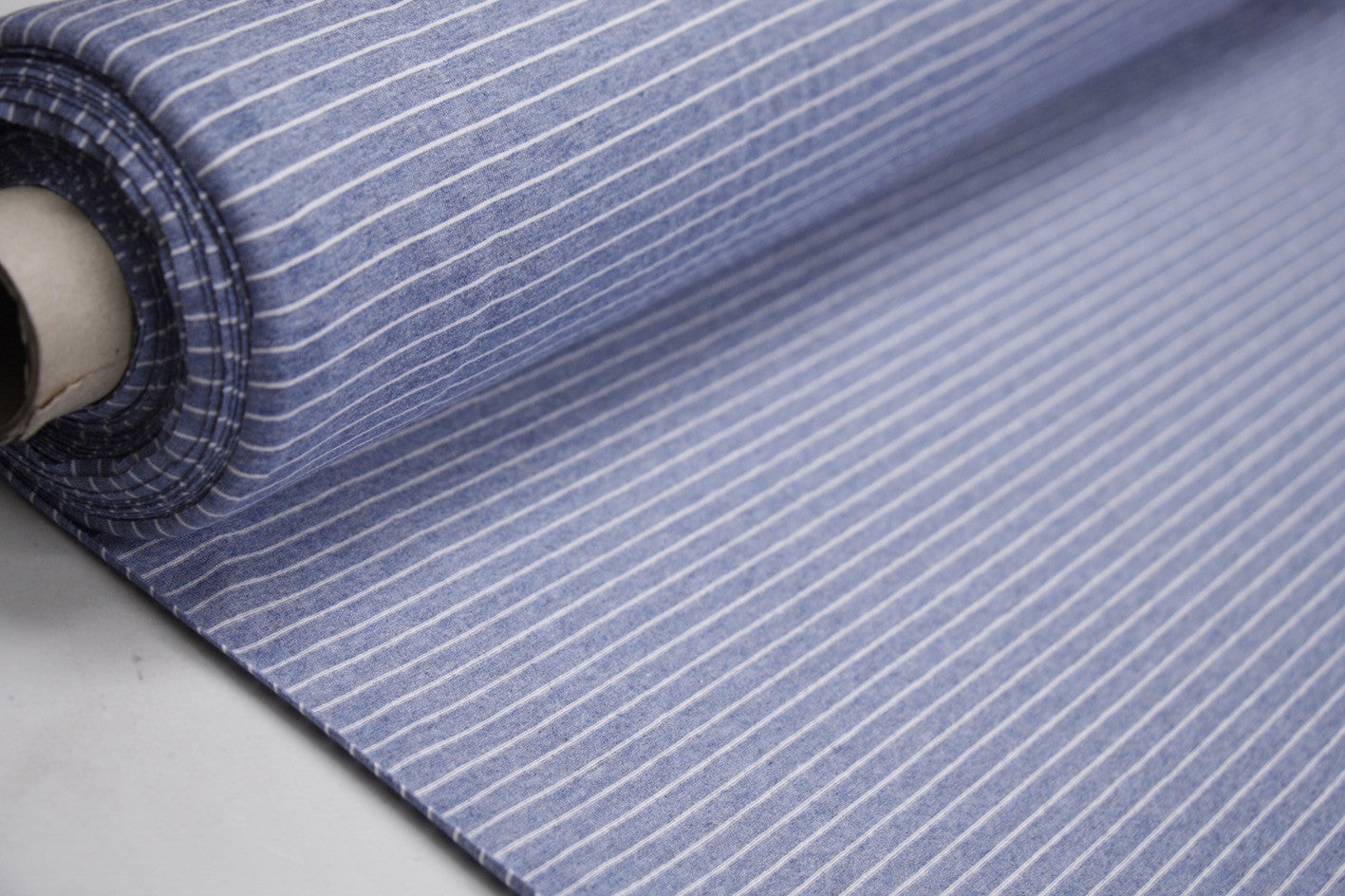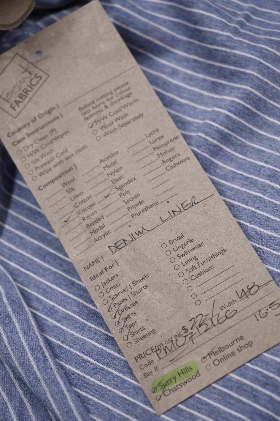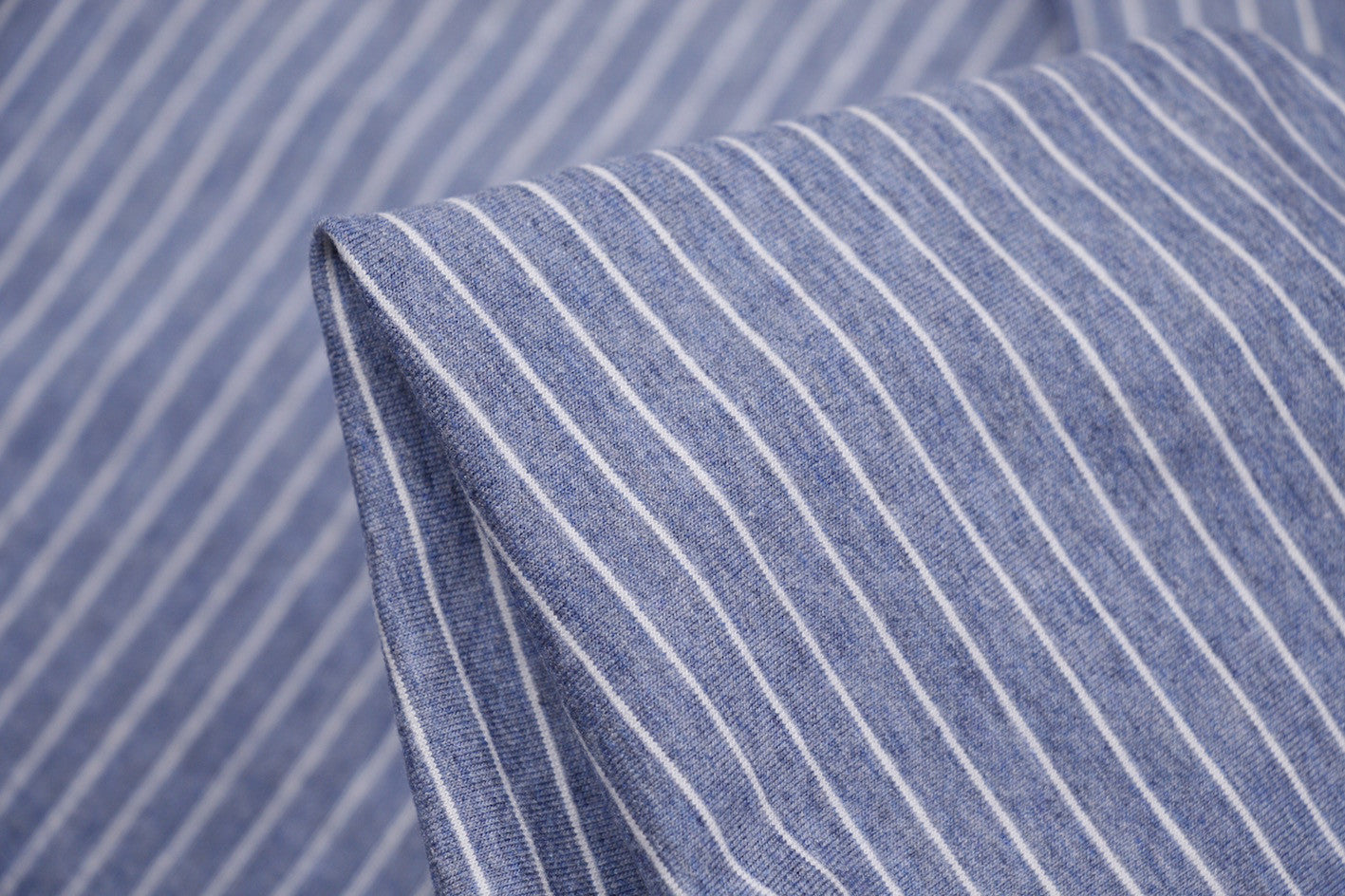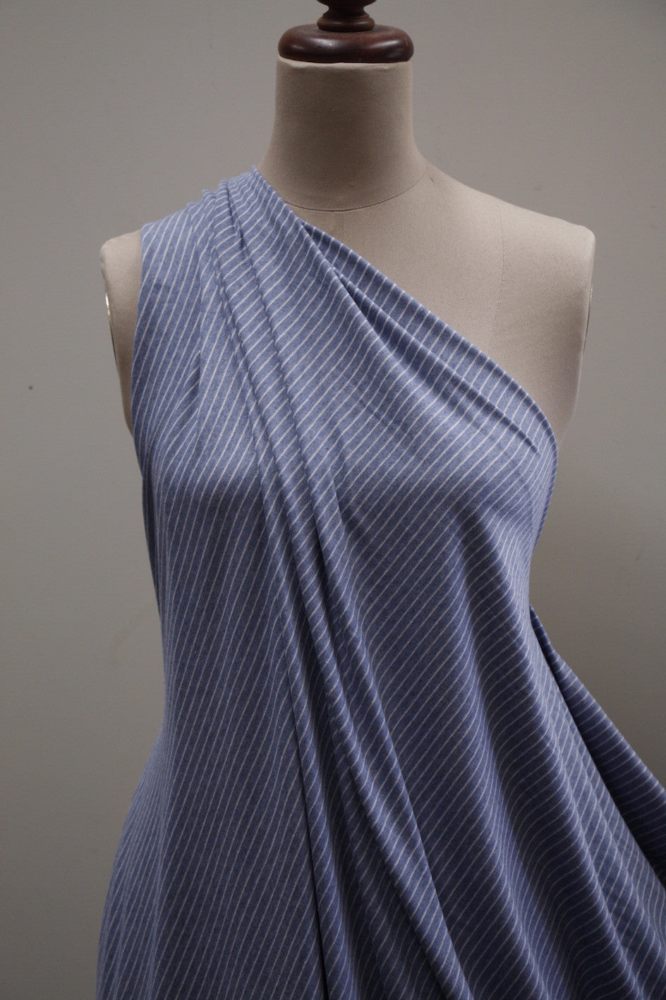 Denim Blue/White striped quality 92% Viscose 8% Elastane Jersey. Width: 148cm wide
