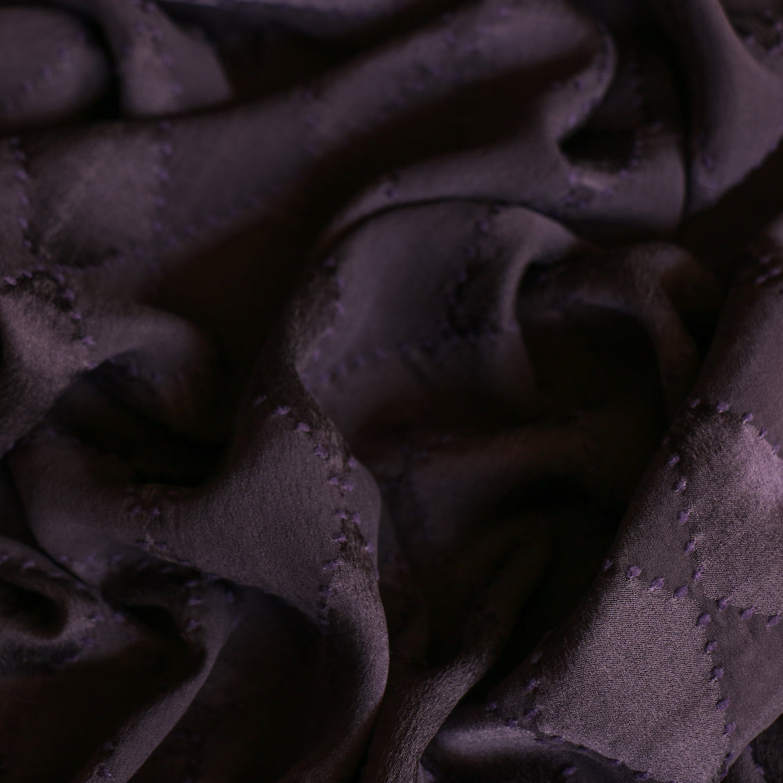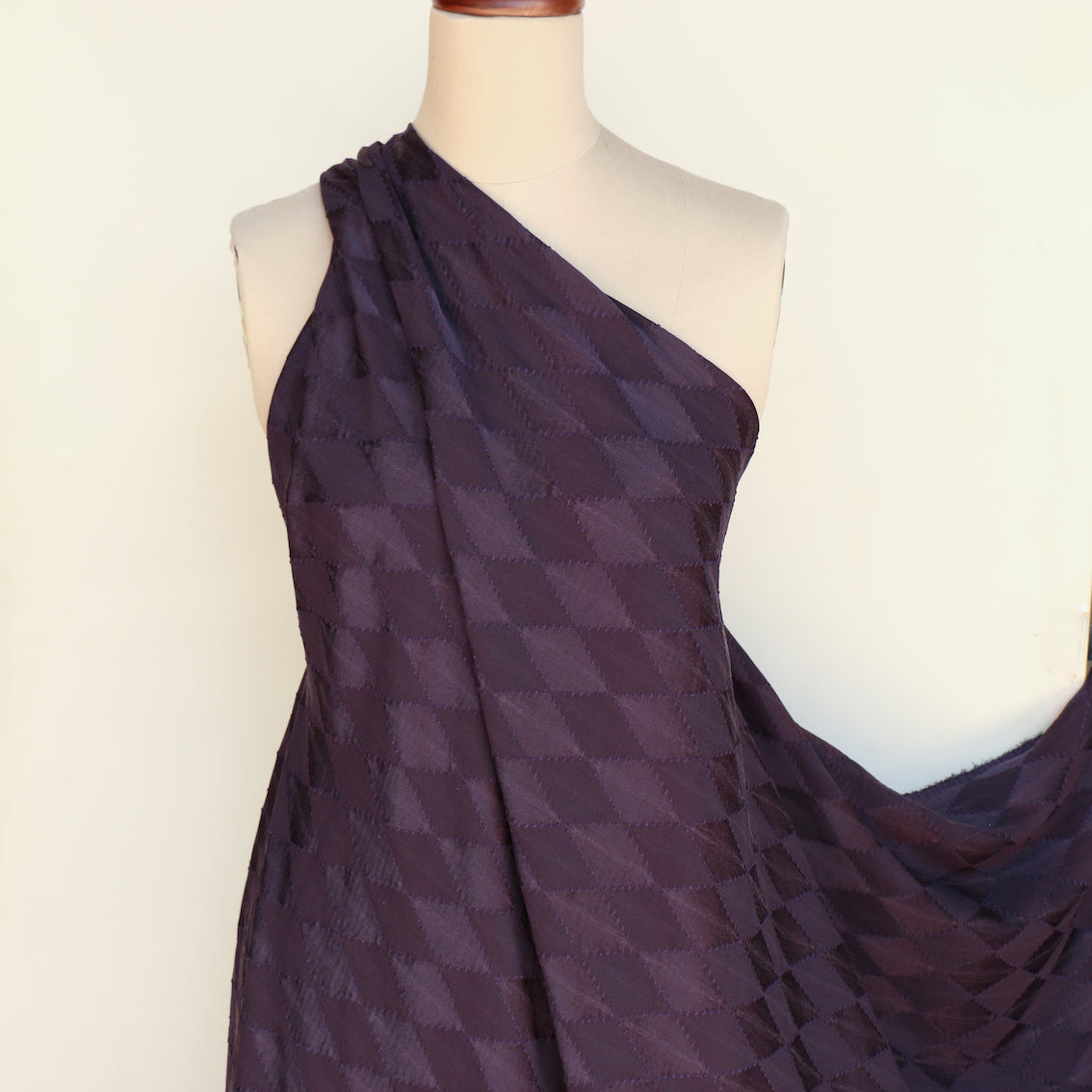 Italian rich dark aubergine purple 100% silk diamond jacquard