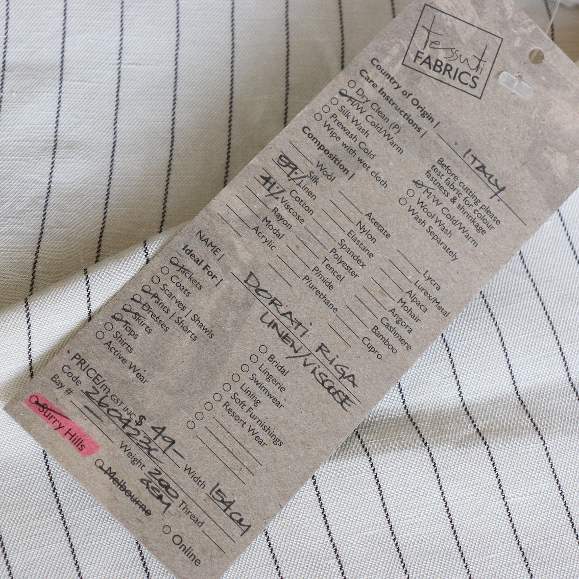 Italian designer cream/black pinstriped 59% linen 41% viscose