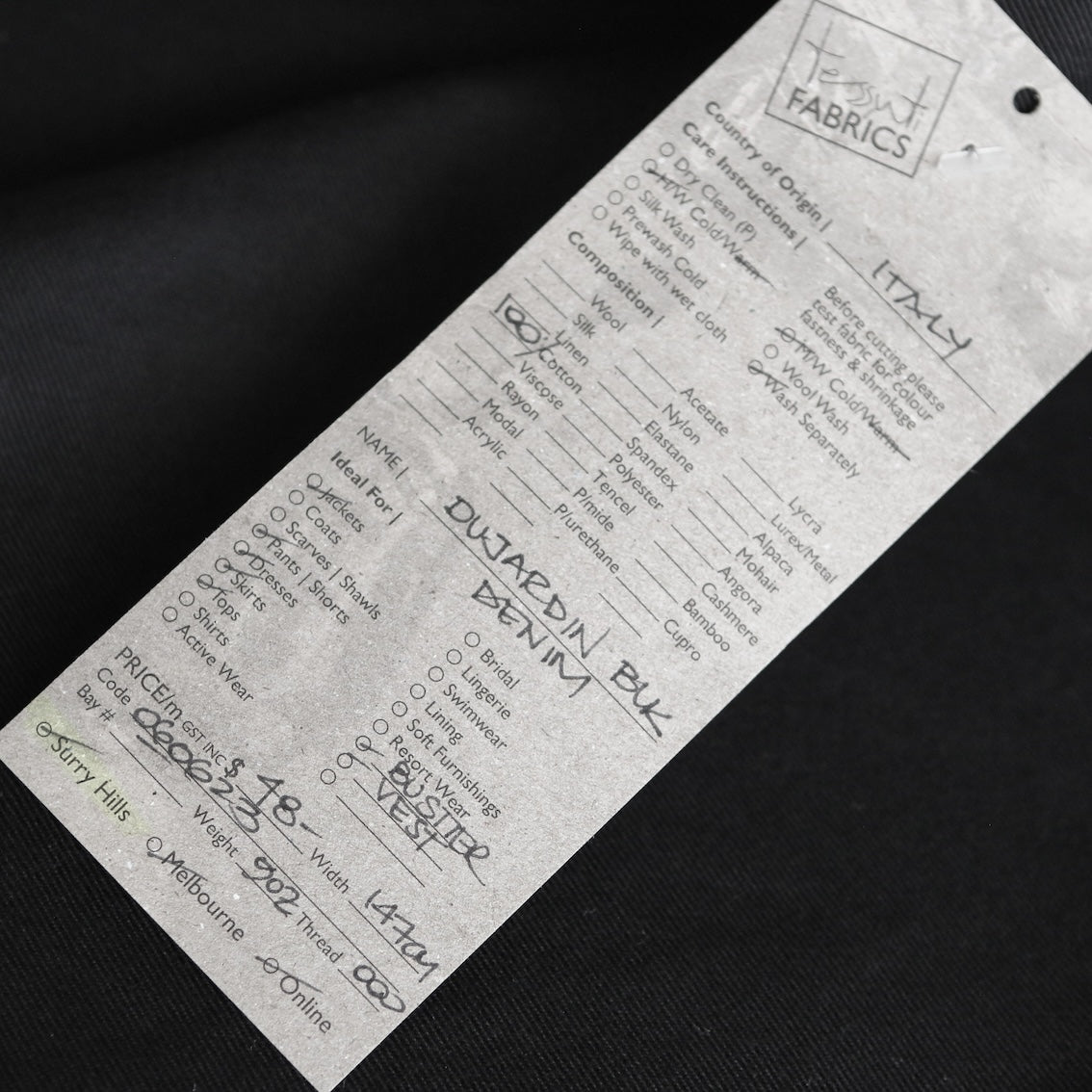 Italian black 100% cotton denim