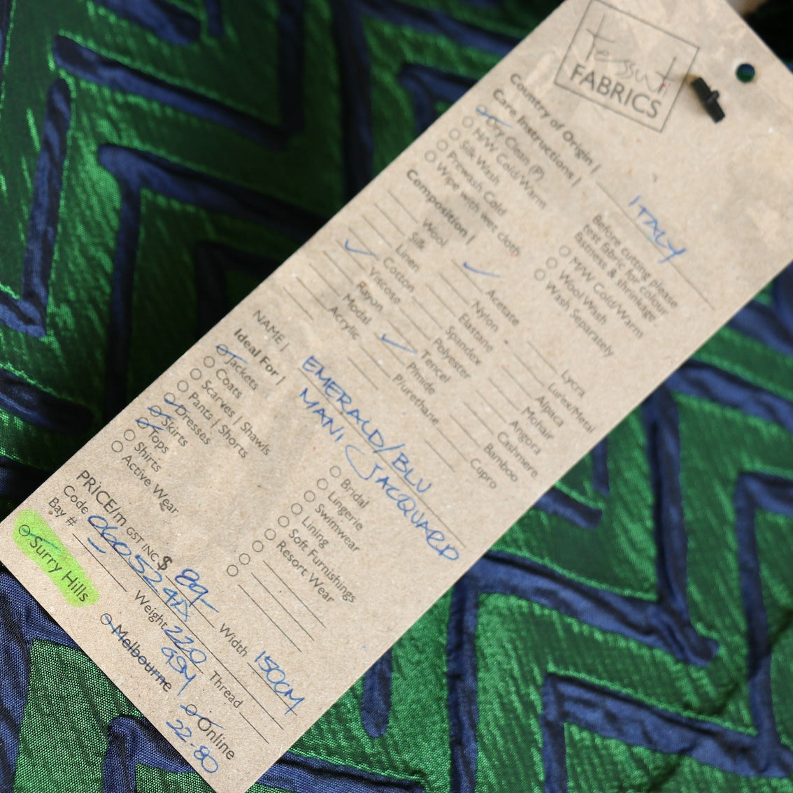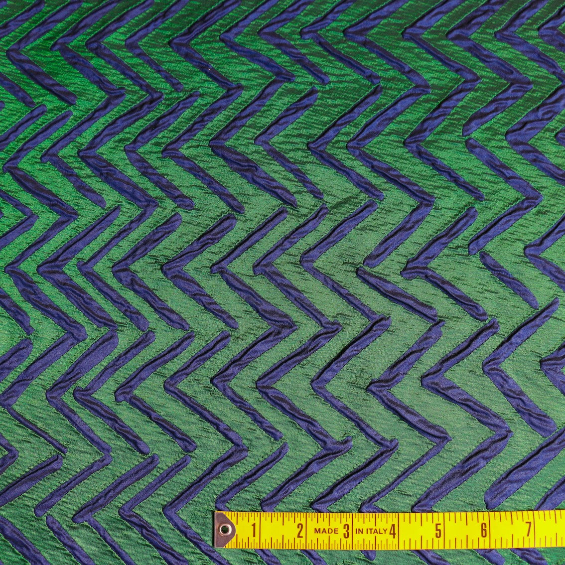 Italian designer green/blue zig zag viscose/acetate/polyamide jacquard