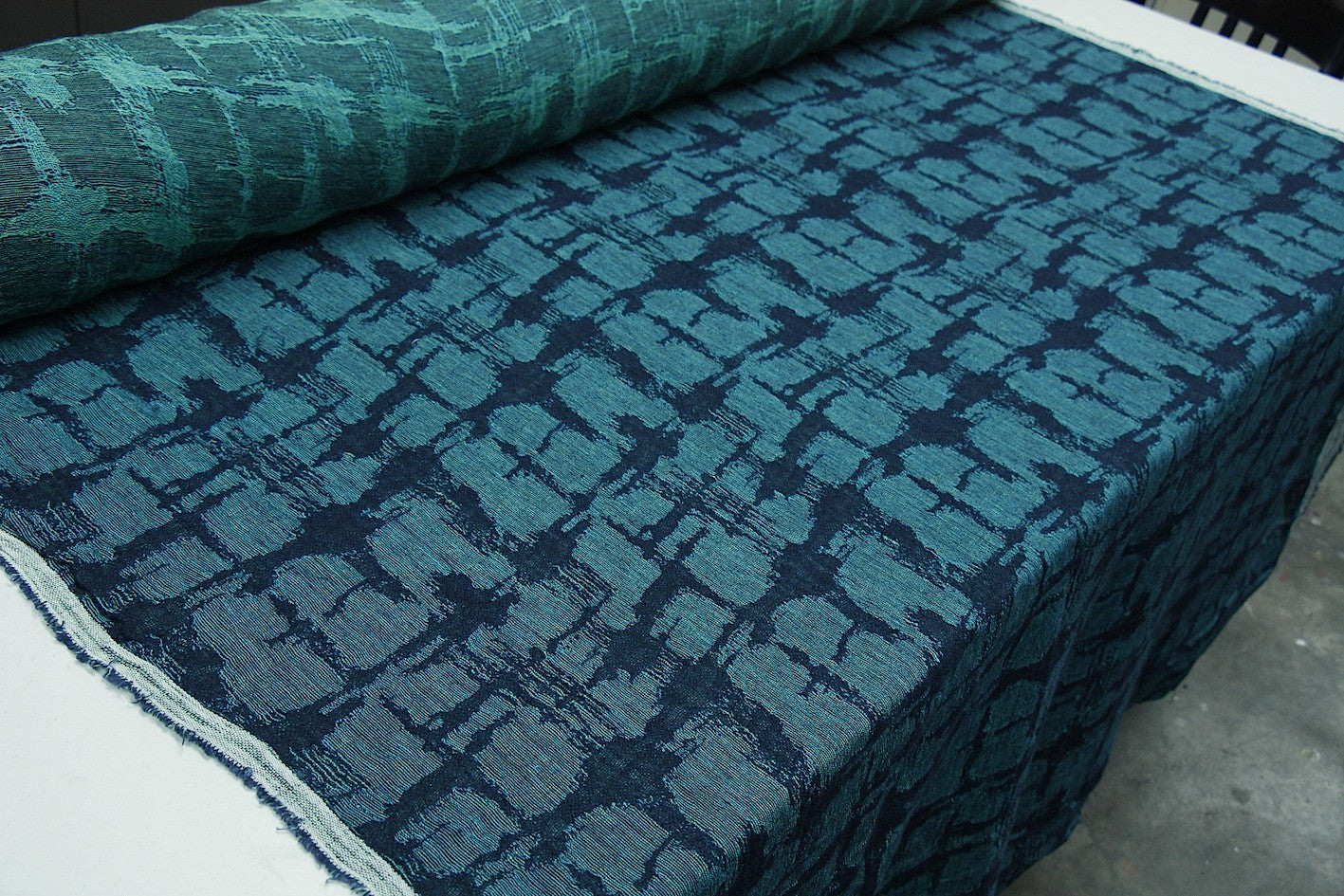 Teal/Navy/Emerald/Spearmint Italian medium weight 95% Linen 5% Polyamide. Width:150cm