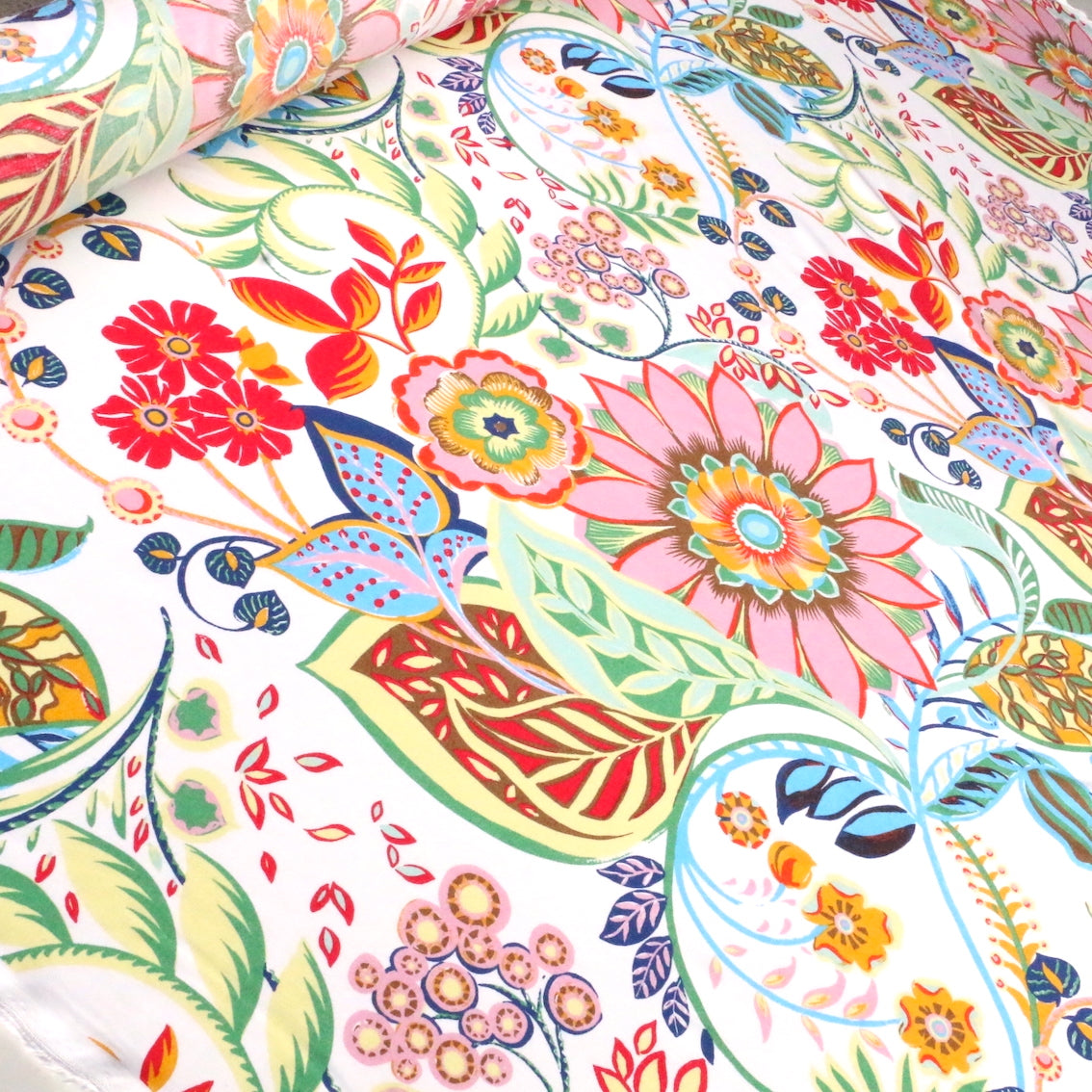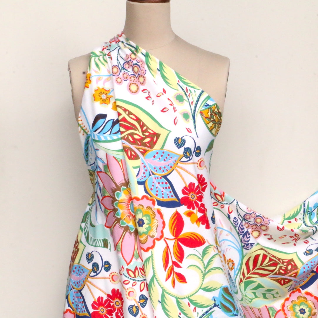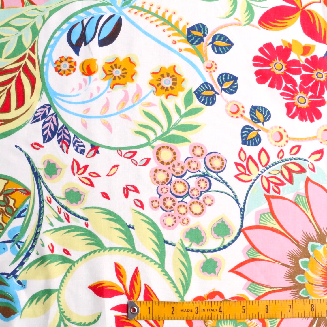 Italian designer bold bright floral on ivory printed 80% viscose 20% linen