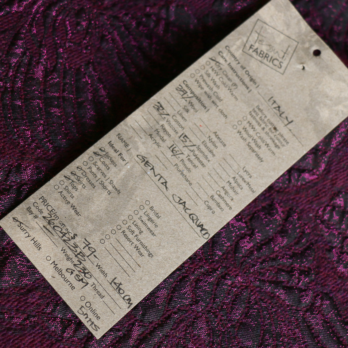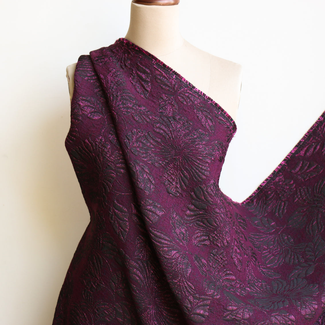 Italian designer wine/black shot 37% wool 32% viscose 16% polyamide 15% polyester leaf jacquard