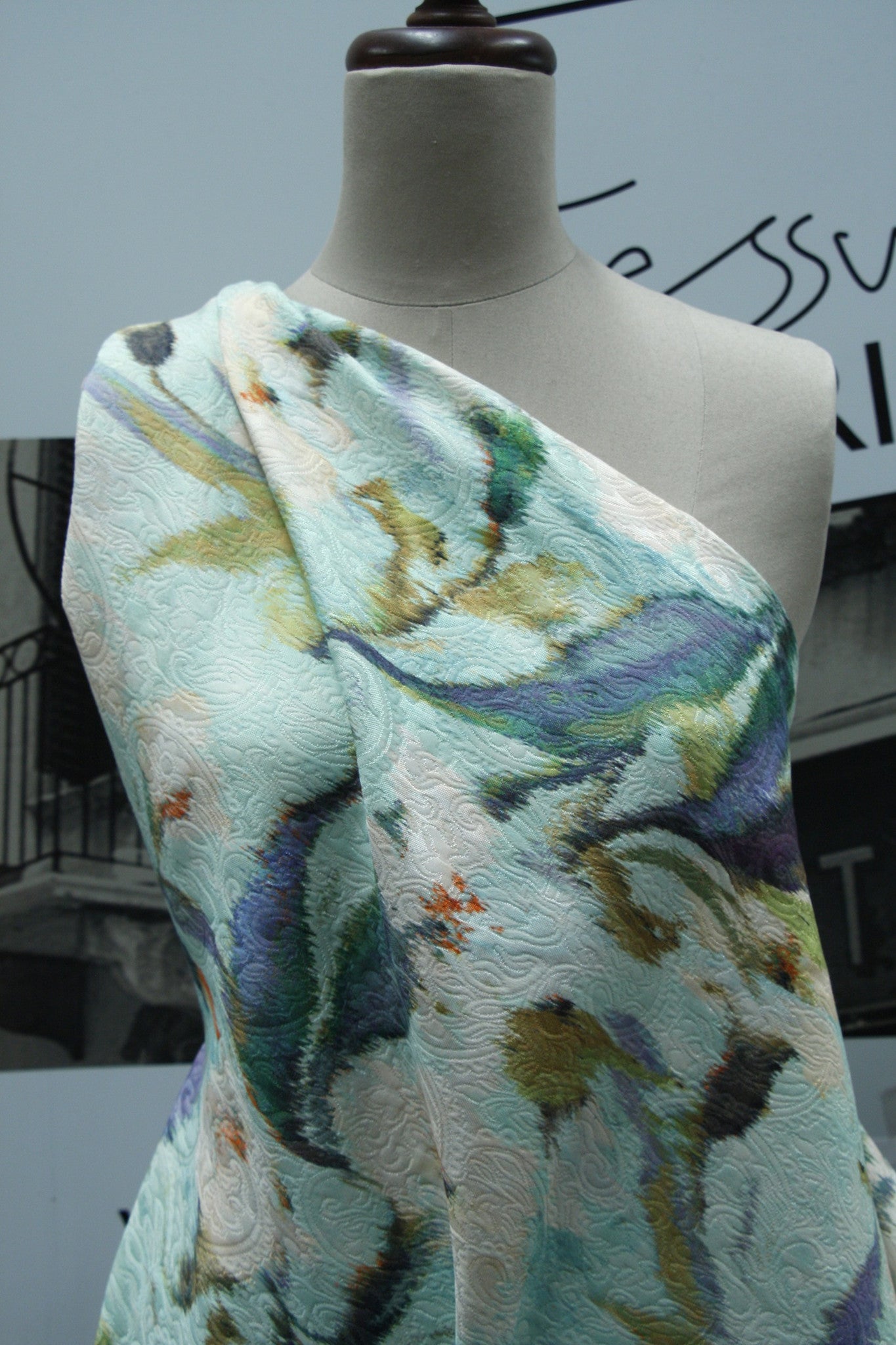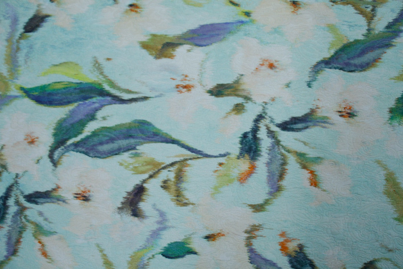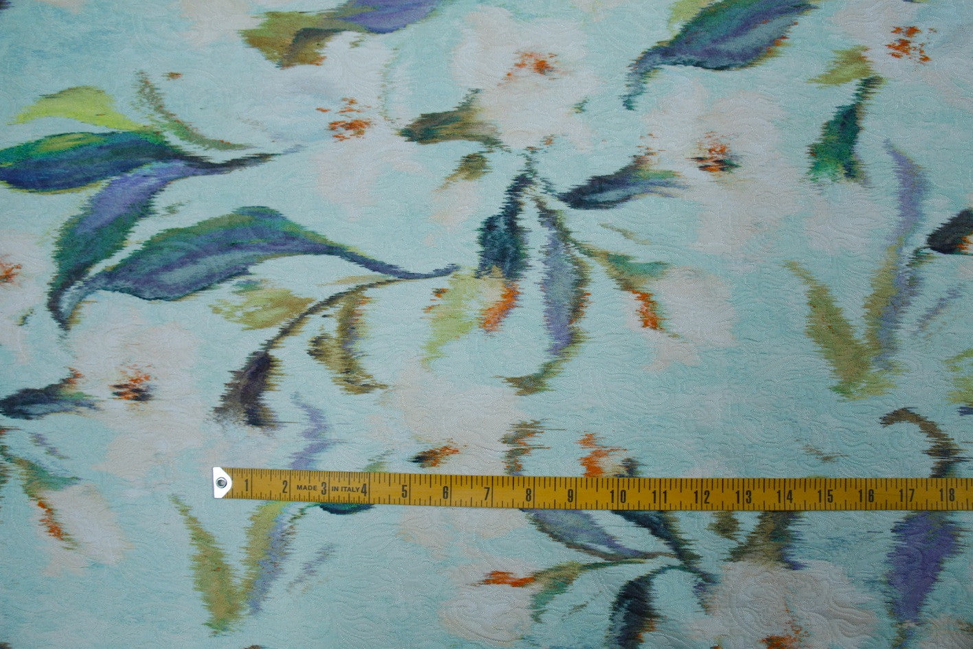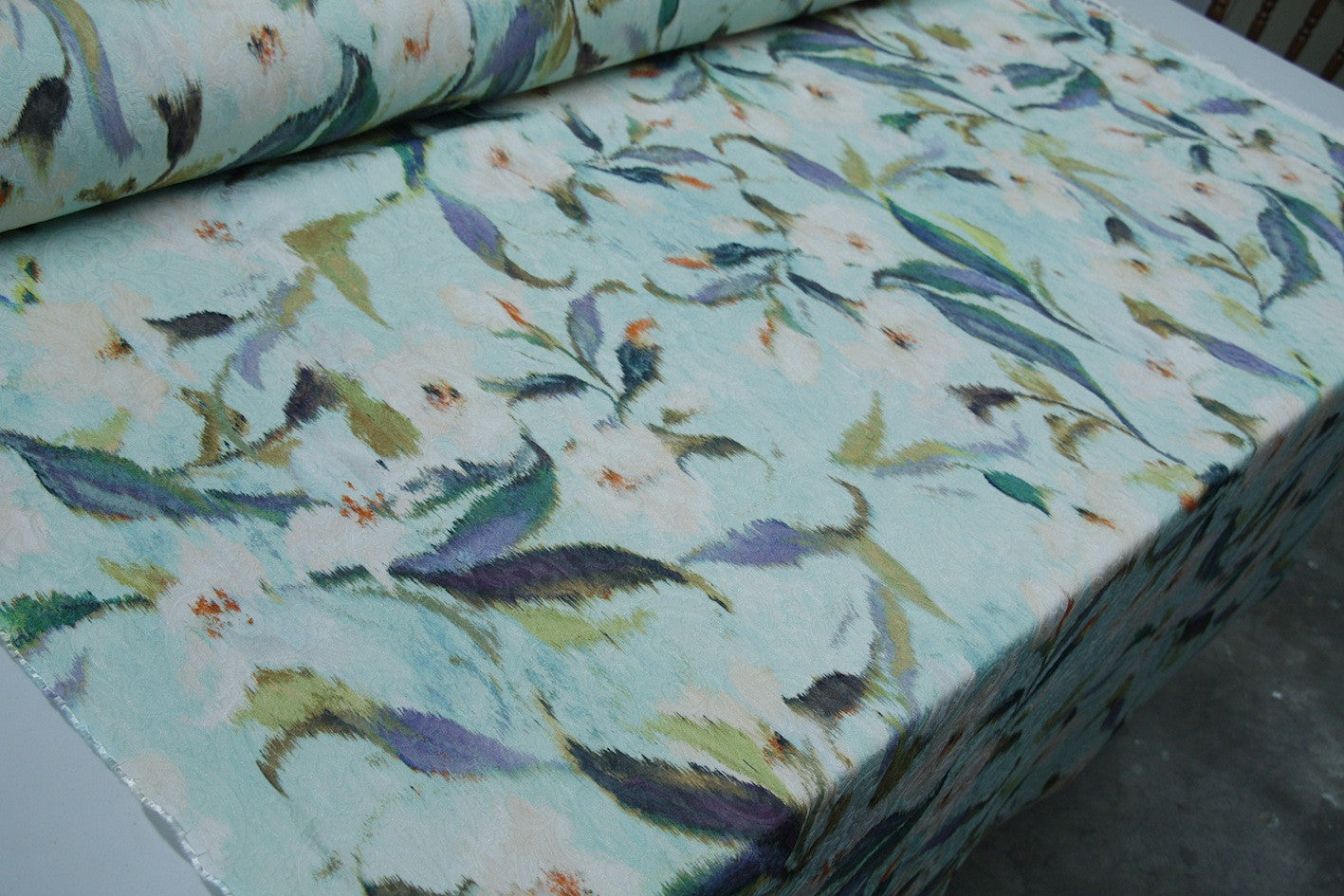 Italian blue viscose/cotton woven jacquard with digital floral print. Width:145cm