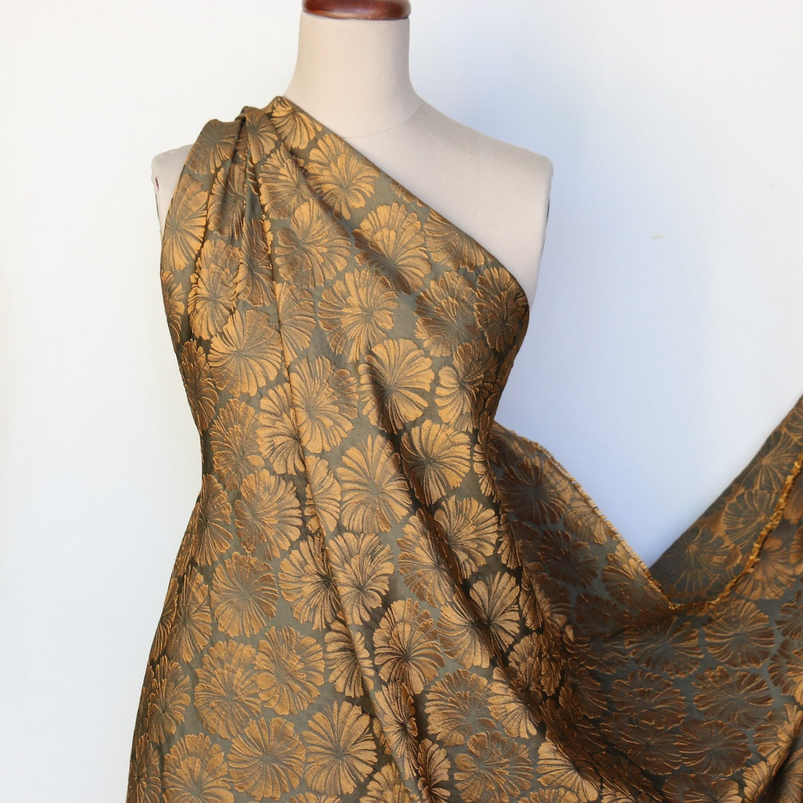 Italian designer bronze floral polyester/rayon/polyamide jacquard