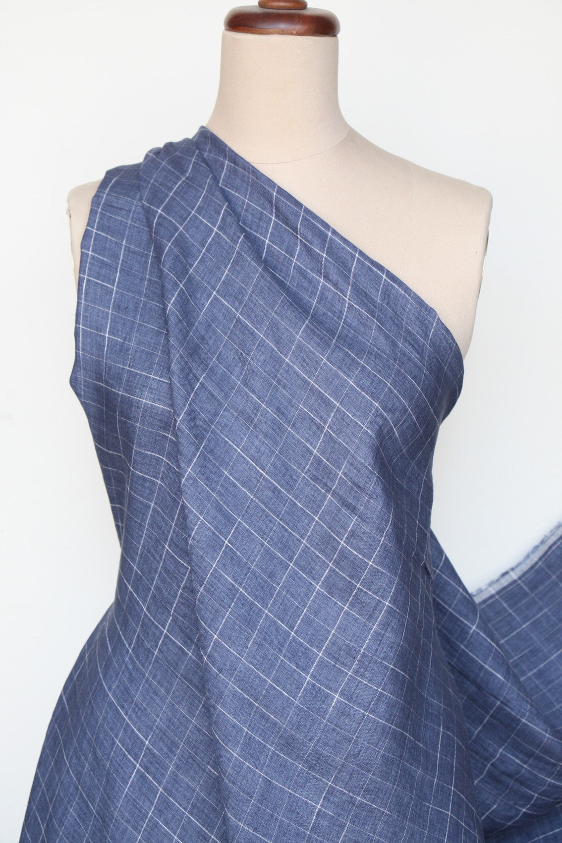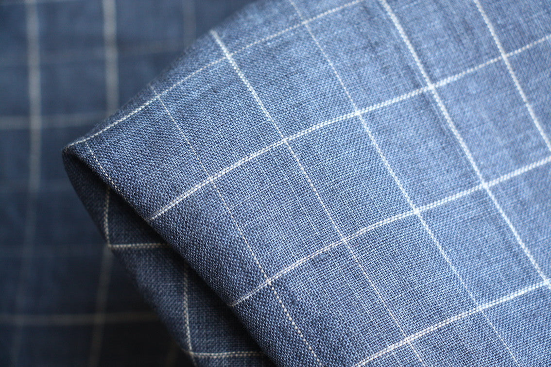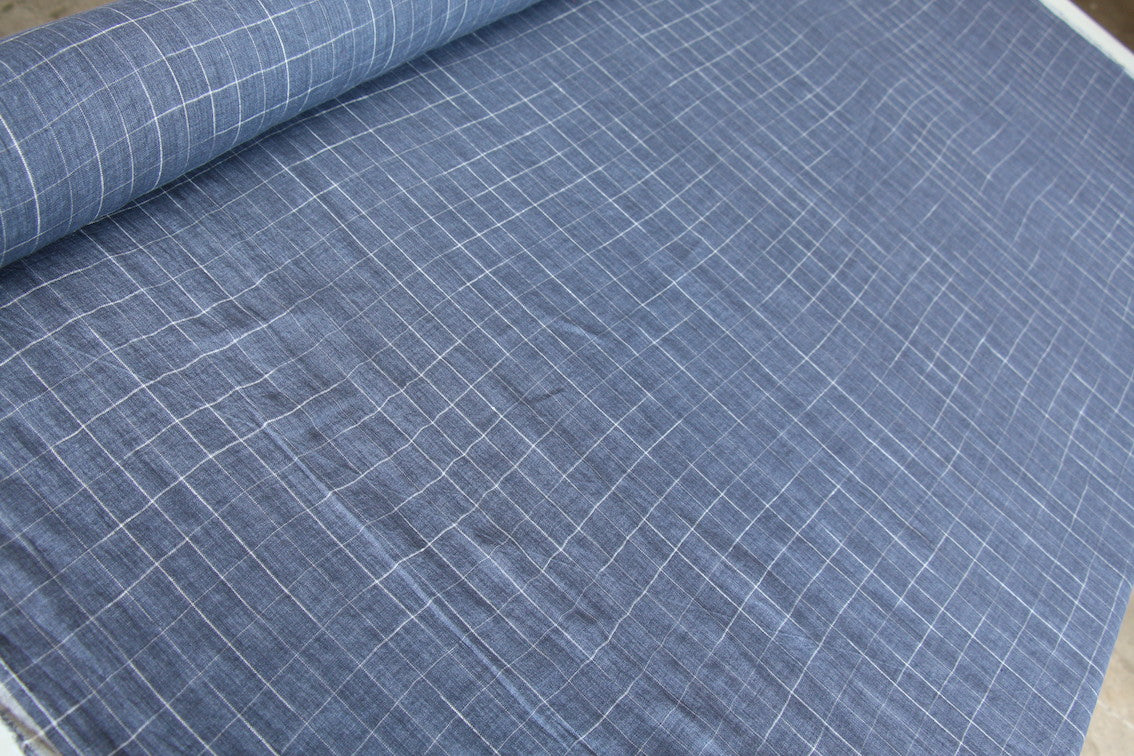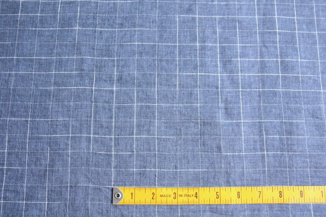 Denim blue/white checked light weight yarn-dyed 100% washed linen.