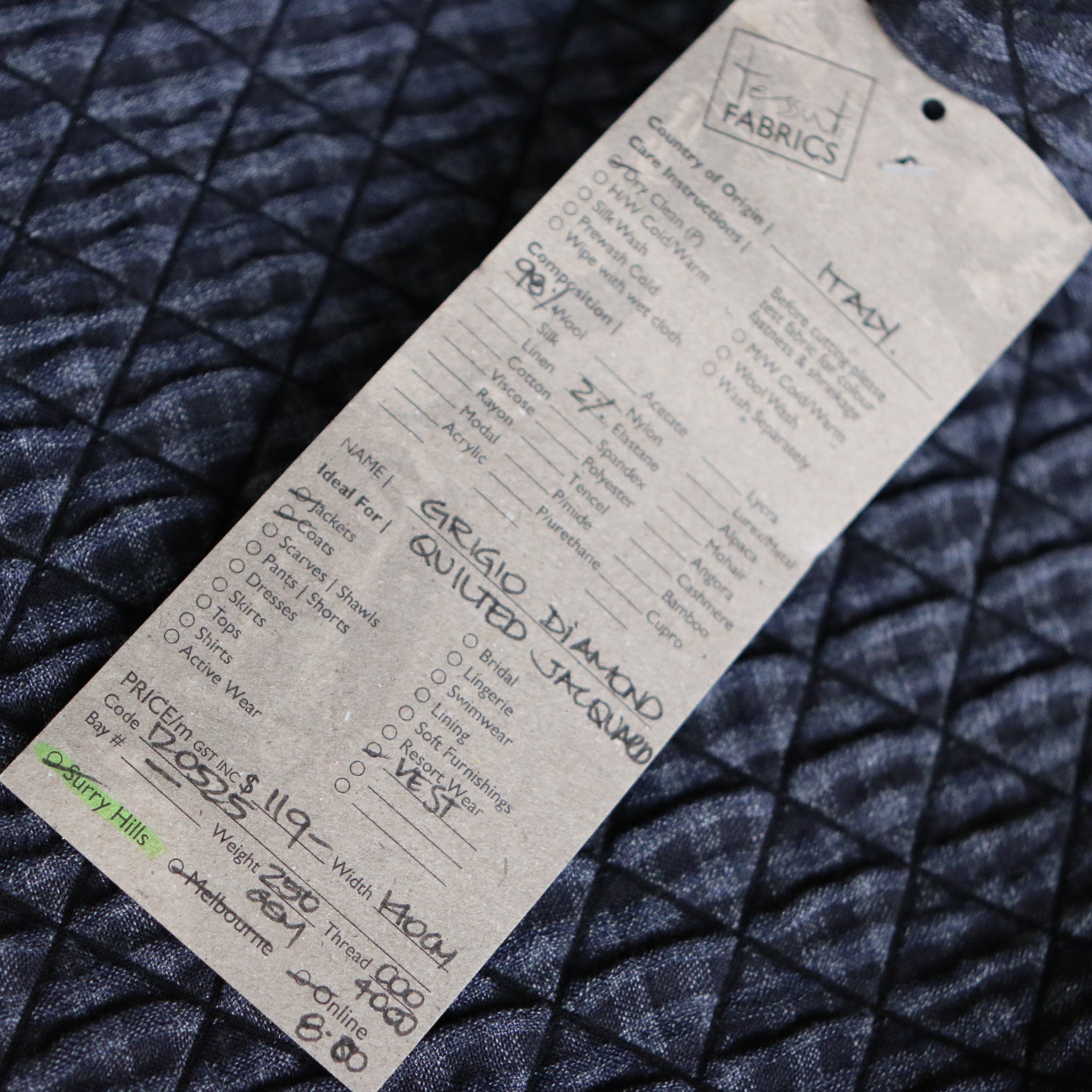 Italian designer black/charcoal gingham check quilted look 98% wool 2% elastane
