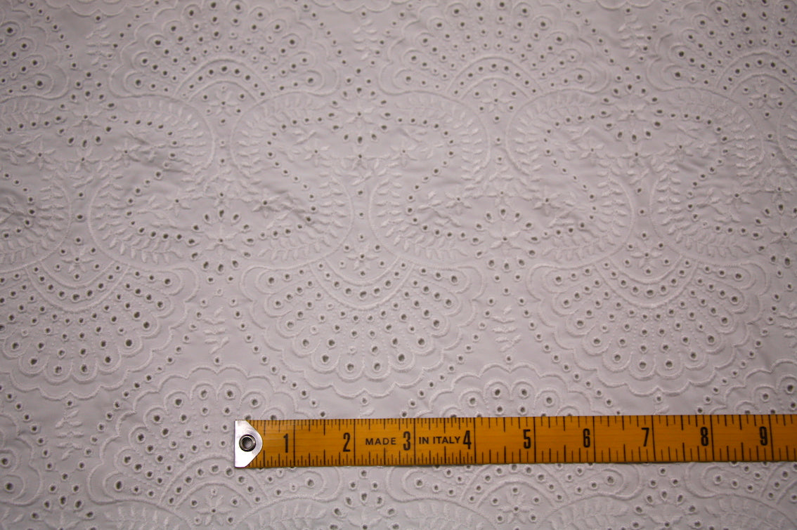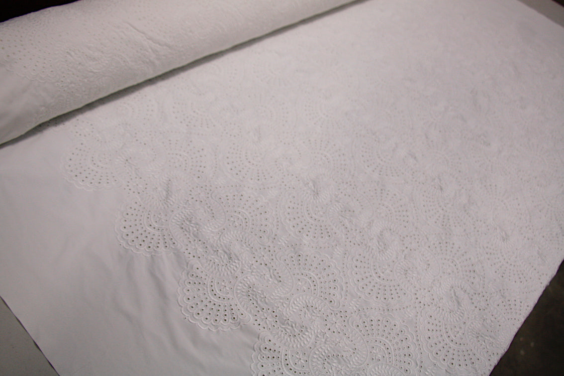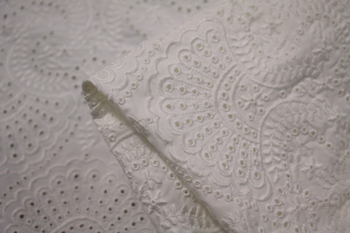 Designer off-white nylon/lycra swimwear fabric with cotton embroidery. Width: 140cm