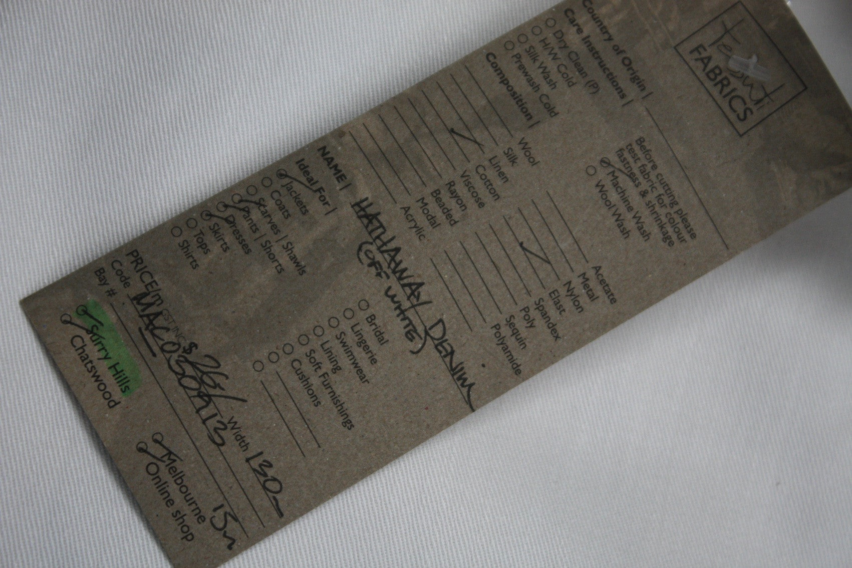 Off-White Cotton/Elastane stretch denim. Width:130cm