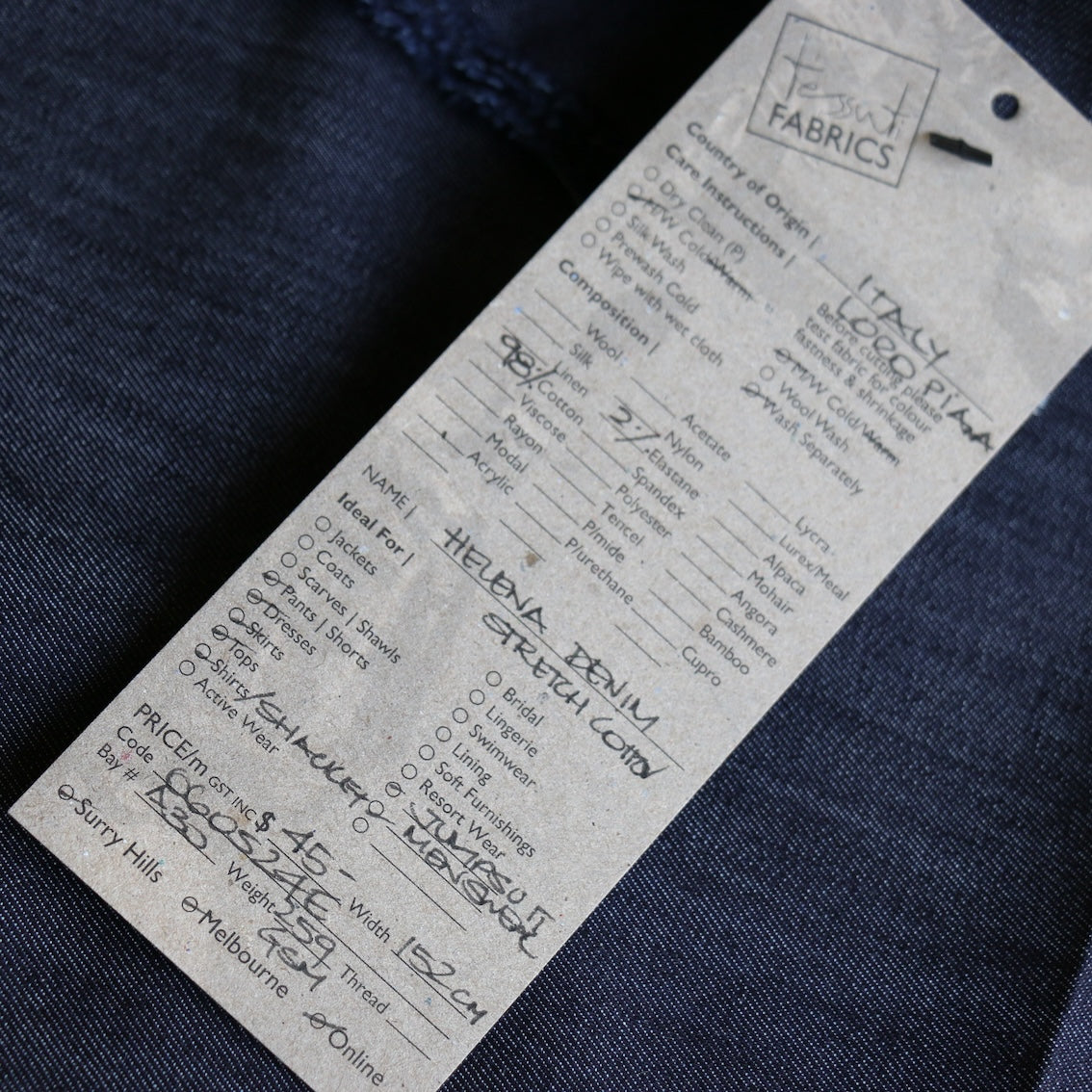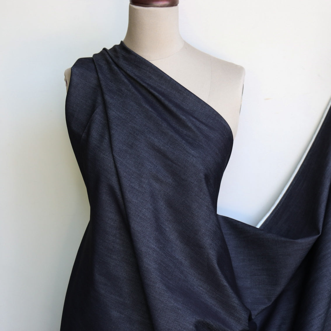 Designer Italian dark navy 98% cotton 2% elastane stretch denim