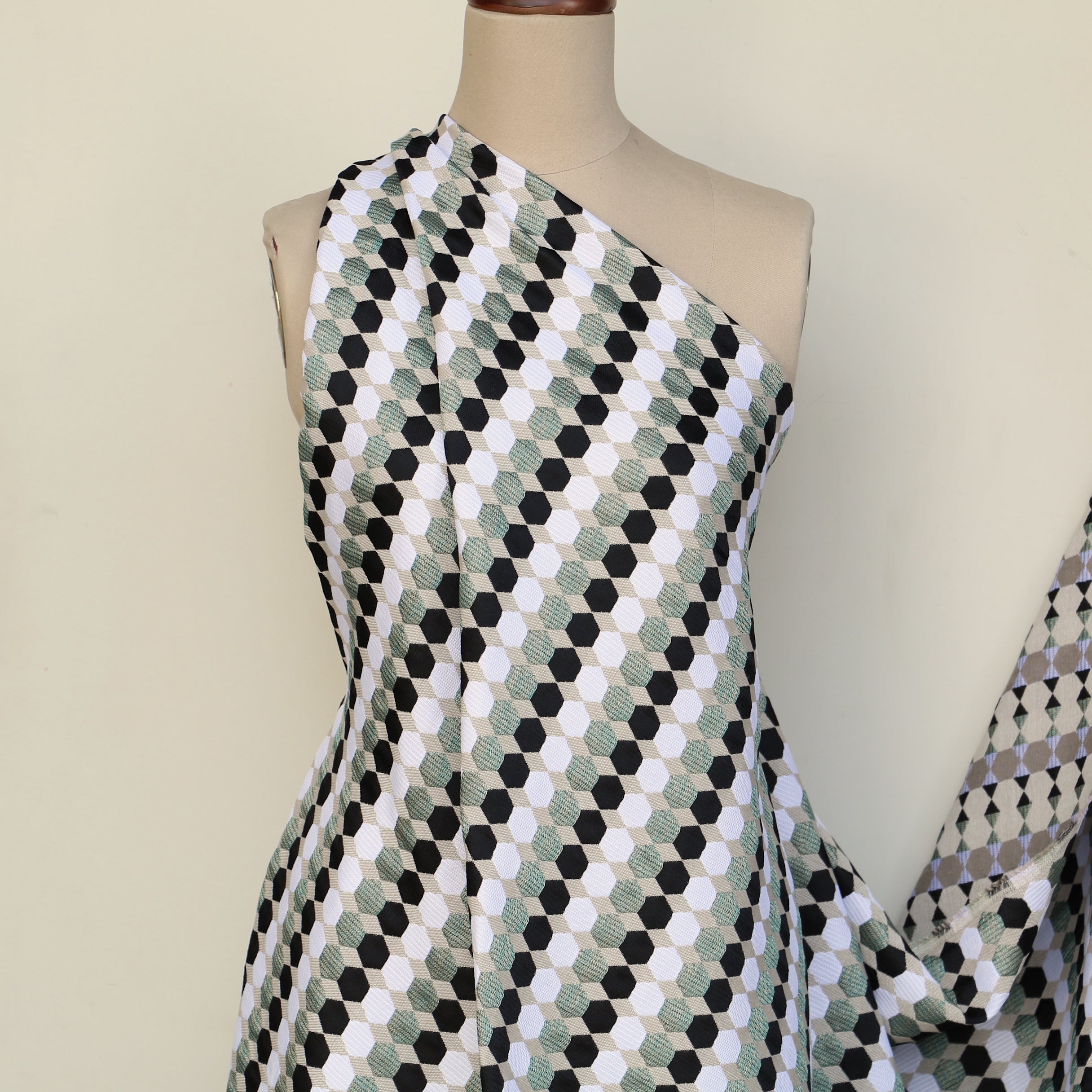 Designer natural/black/green cotton/viscose/polyester/polyamide jacquard