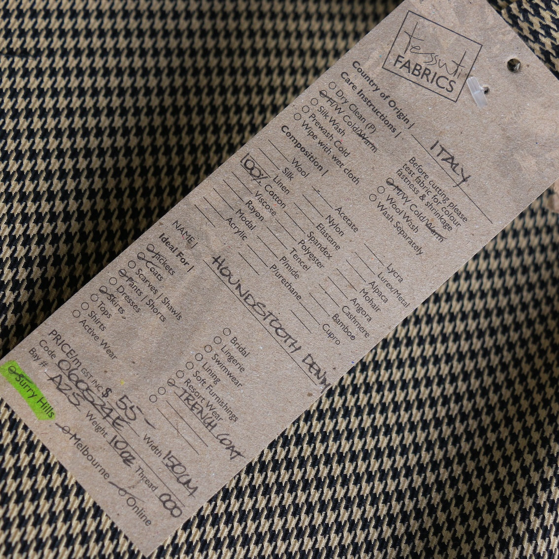 Italian black houndstooth 100% cotton denim