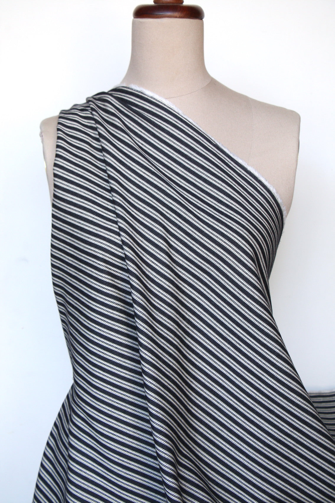 Italian black/natural textured ticking striped 100% cotton denim. Width: 155cm Weight: 7.5oz