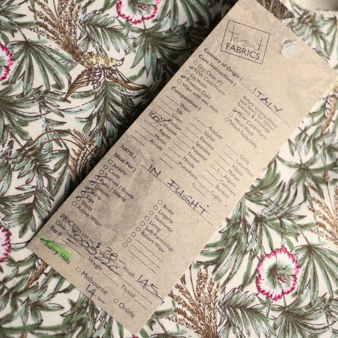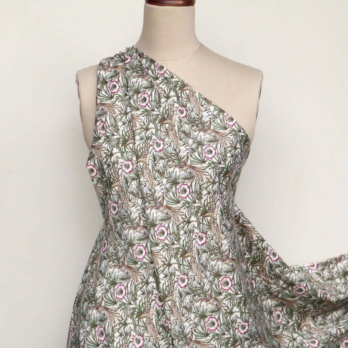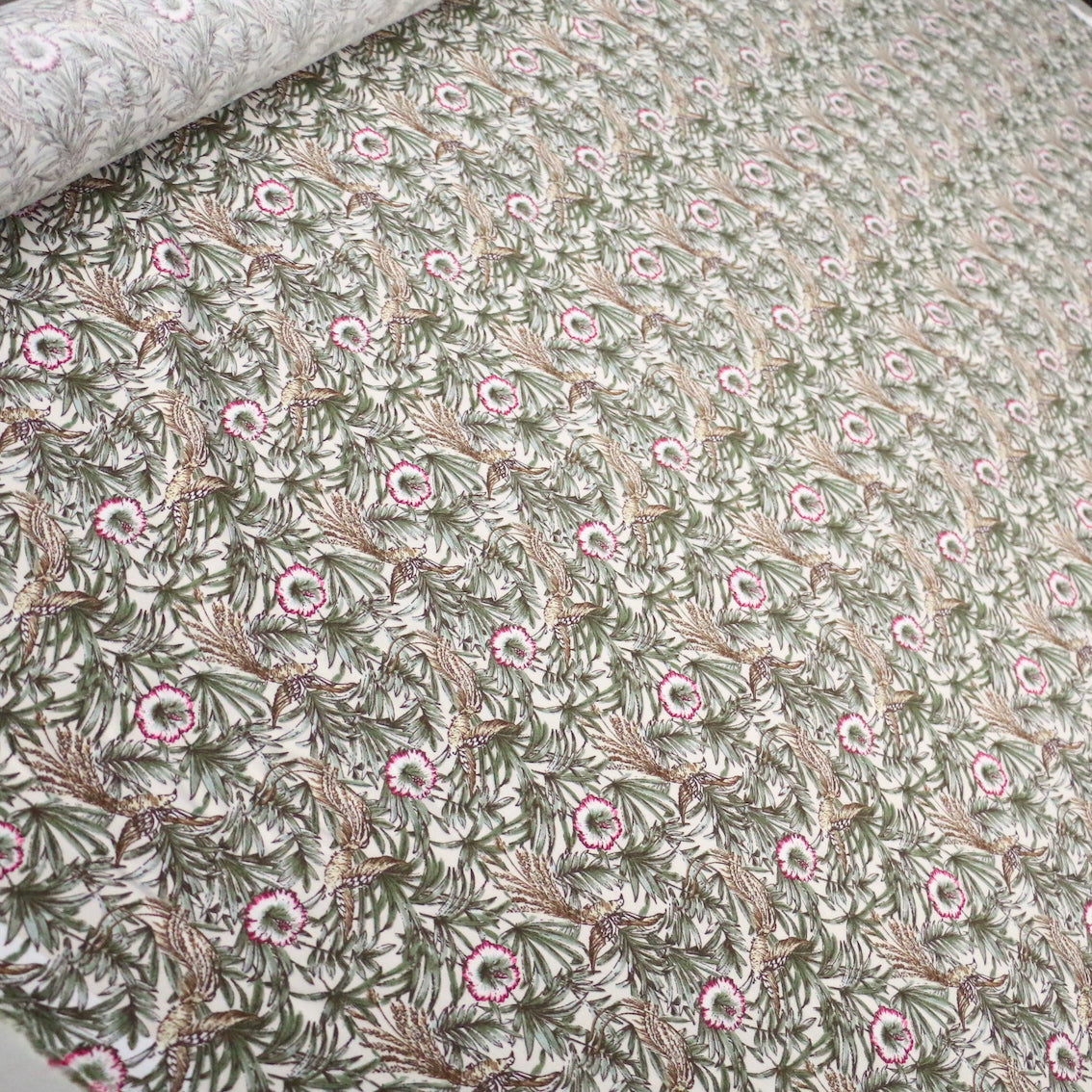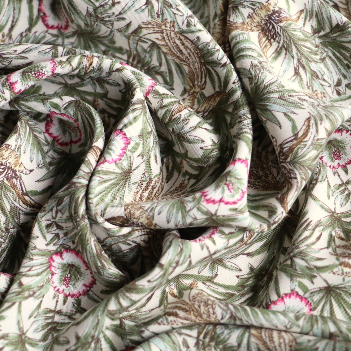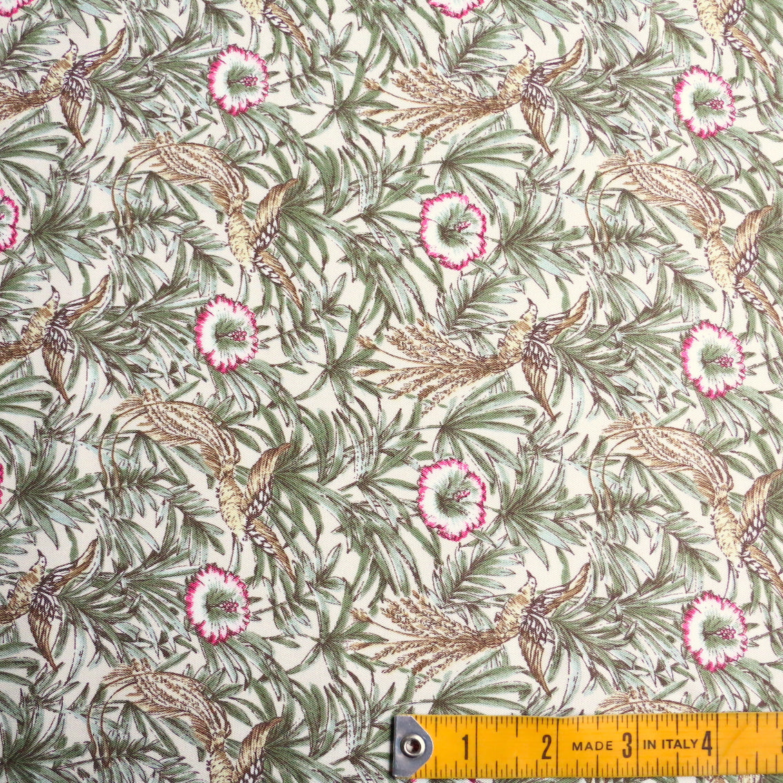Italian designer floral/fauna printed 100% viscose poplin