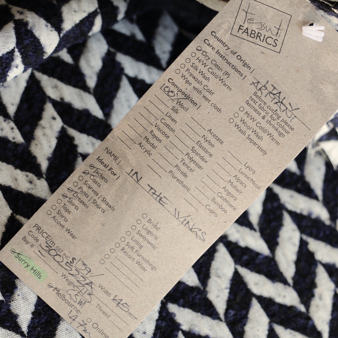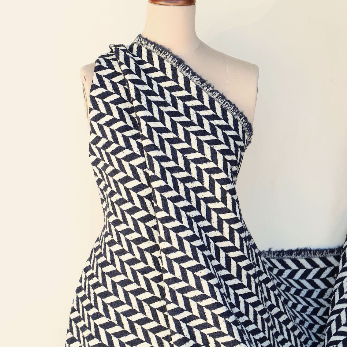 Italian designer navy/winter white 100% wool jacquard
