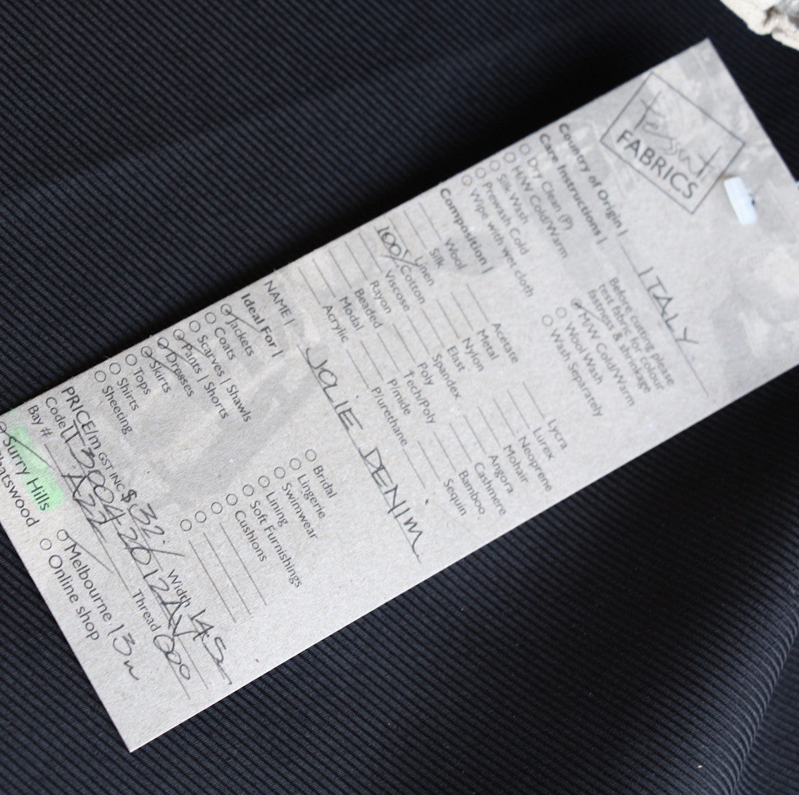 Italian black twill weave 100% cotton. Width: 145cm Weight: 10oz