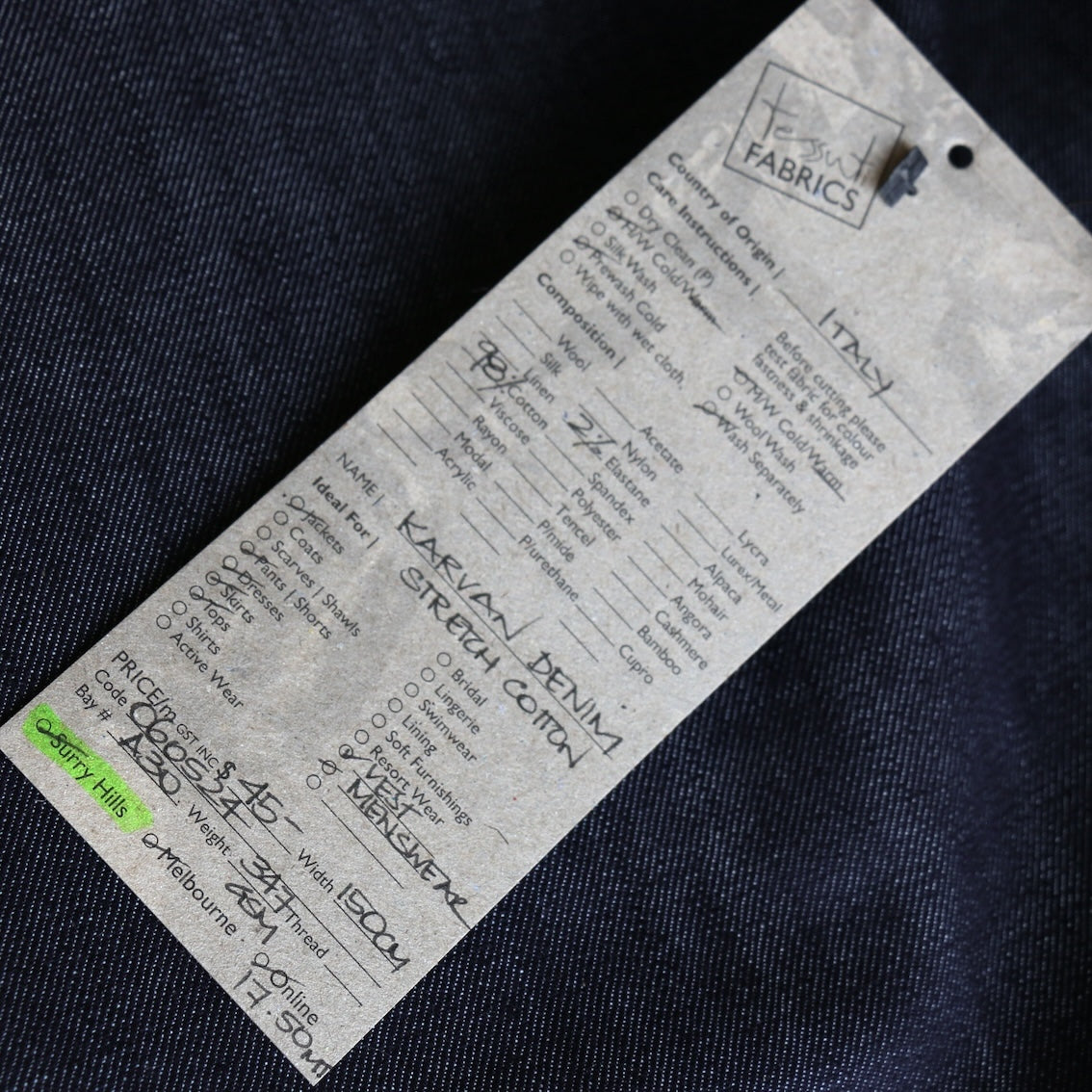 Designer Italian dark navy 98% cotton 2% elastane stretch denim